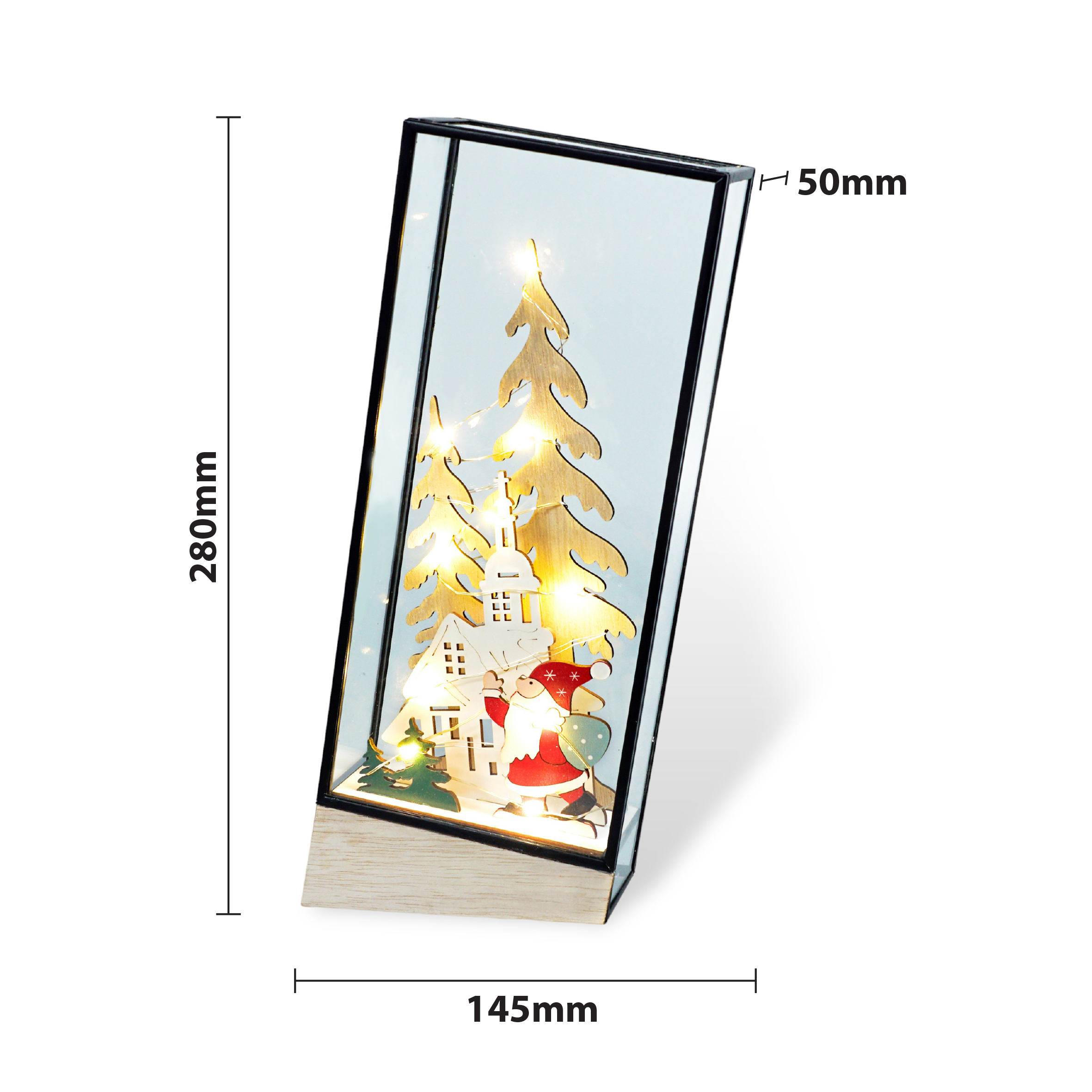 Xmas Haus Hurricane Glass Holder with Light Up Festive Village and Santa Scene Battery Operated