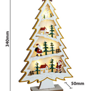 Xmas Haus Natural festive Wood LED Light Up Christmas Village With in a Tree Scene Battery Operated