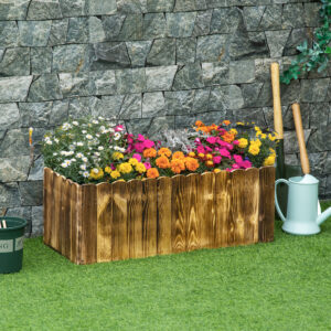Outsunny Garden Wooden Pine Trough Planter with Topped Trellis Climbing Plants Flower Raised Bed