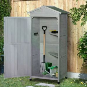 Outsunny Wooden Garden Cabinet 3Tier Storage Shed 2 Shelves Lockable Organizer with Hooks Foot Pad 74 x 55 x 155cm