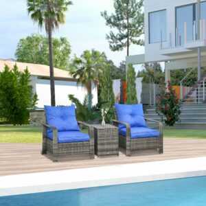 Outsunny 3 pcs PE Rattan Wicker Garden Furniture Patio Bistro Set Weave Conservatory Sofa Storage Table and Chairs Set Cushion Wicker