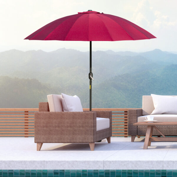 Outsunny ??255cm Patio Parasol Umbrella Outdoor Market Table Parasol with Push Button Tilt Crank and Sturdy Ribs for Garden Lawn Backyard Pool Wine