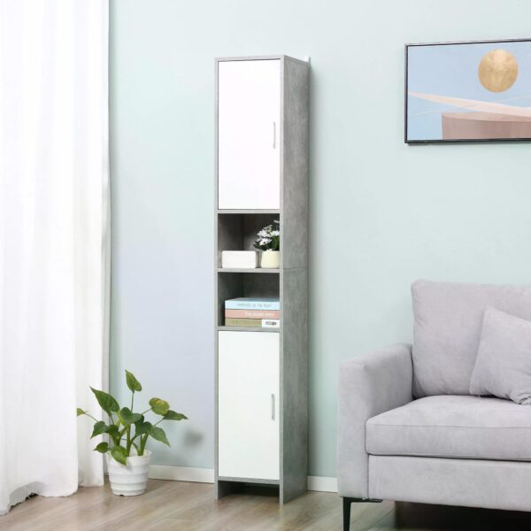 kleankin Freestanding Tall Bathroom Storage Cabinet w/ 2 Cupboards 2 Open Compartments, Slim Bathroom Organizer Adjustable Shelves Elevated Base