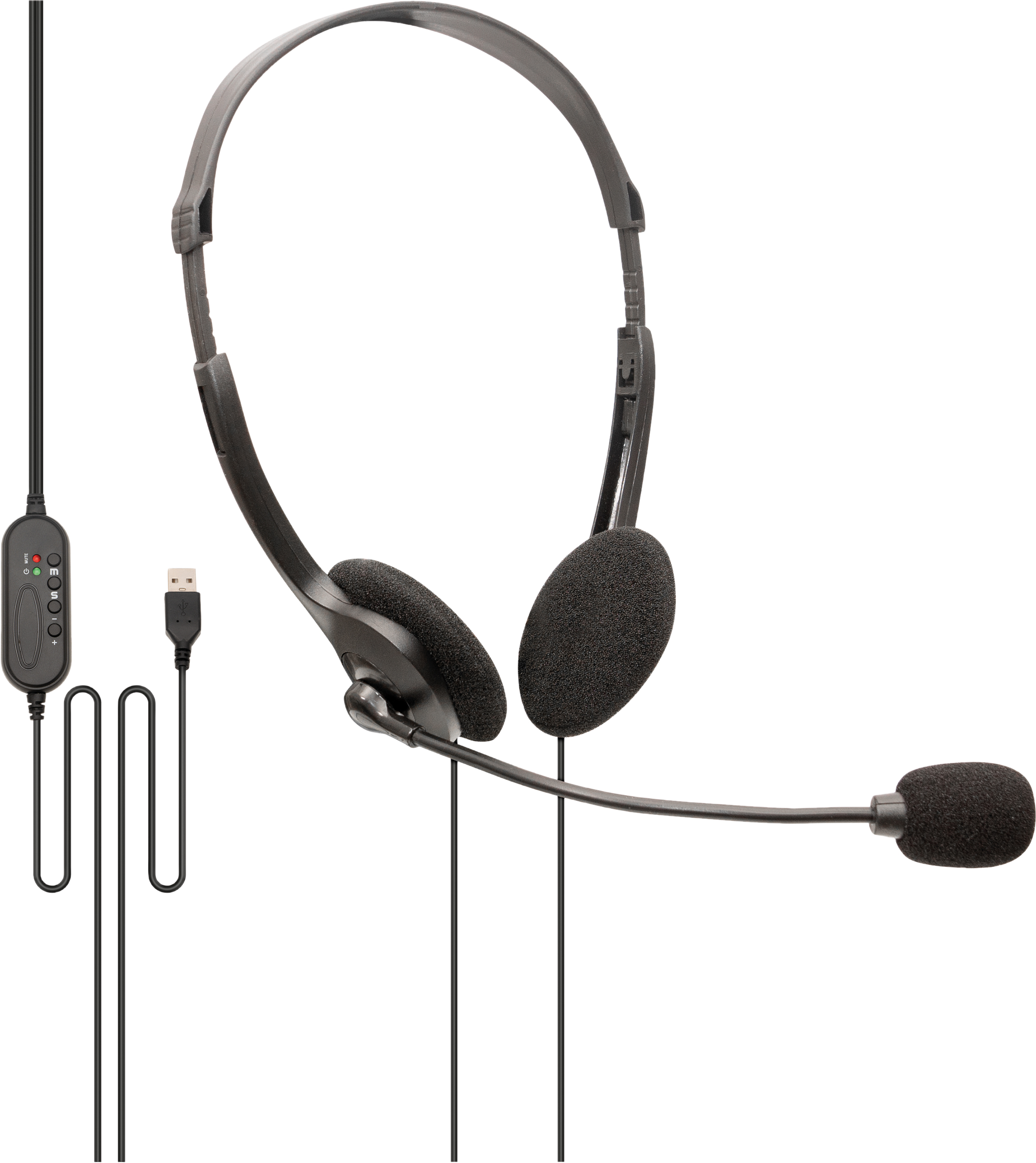 A light weight USB, stereo PC / MAC compatible headset with flexible boom microphone and in-line controls for volume up and down, mic Mute and Speaker Mute. These headphones are ideal for home or business computer use, supplied with a 2m lead terminated with a USB plug. The headphones are suitable for general computer use including online gaming, listening to music or watching videos, as well as video internet chat on Skype, MS Teams, ZOOM, call centres and online conference calls.