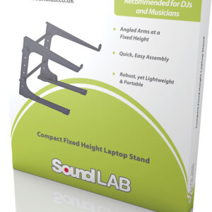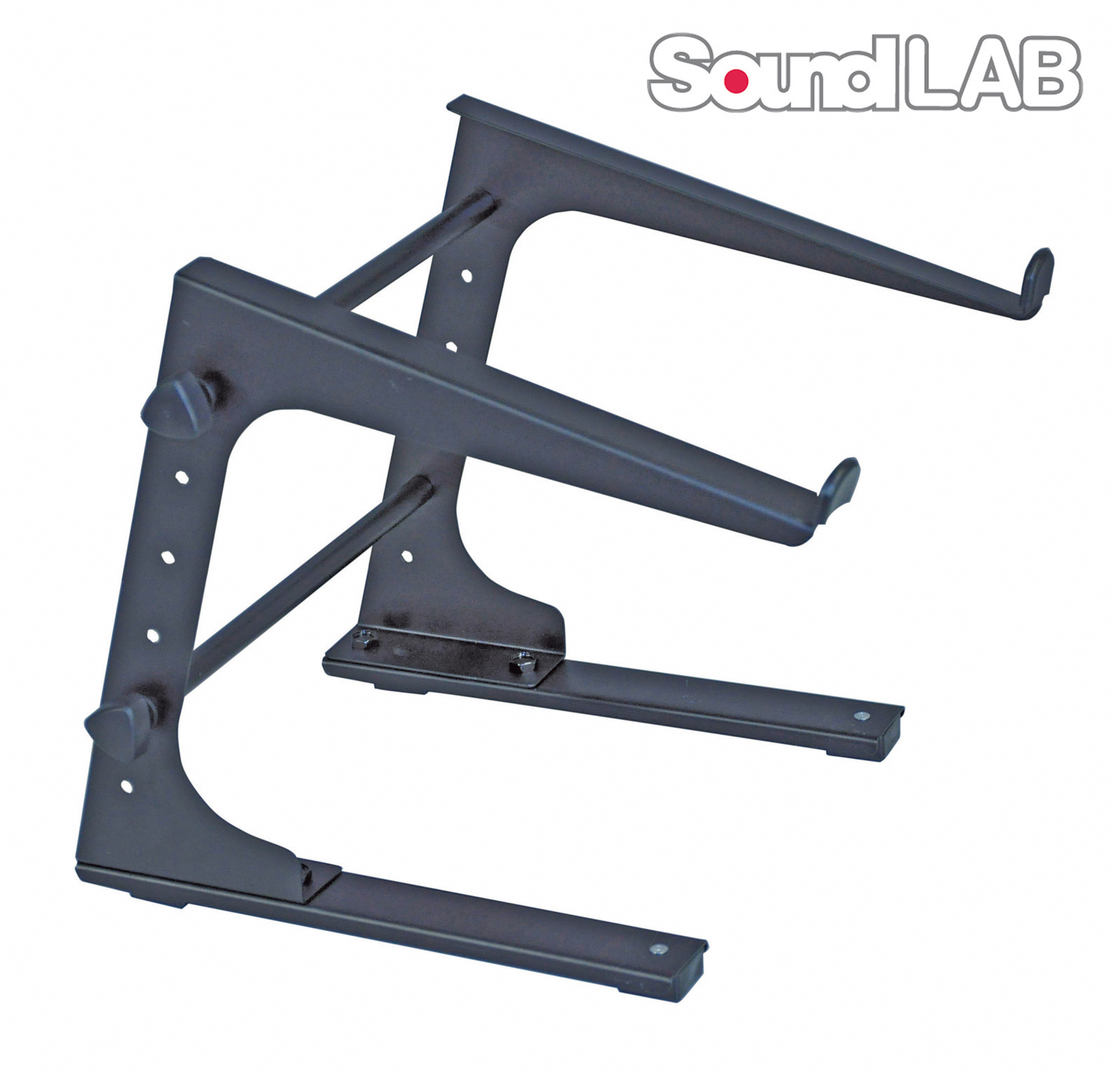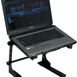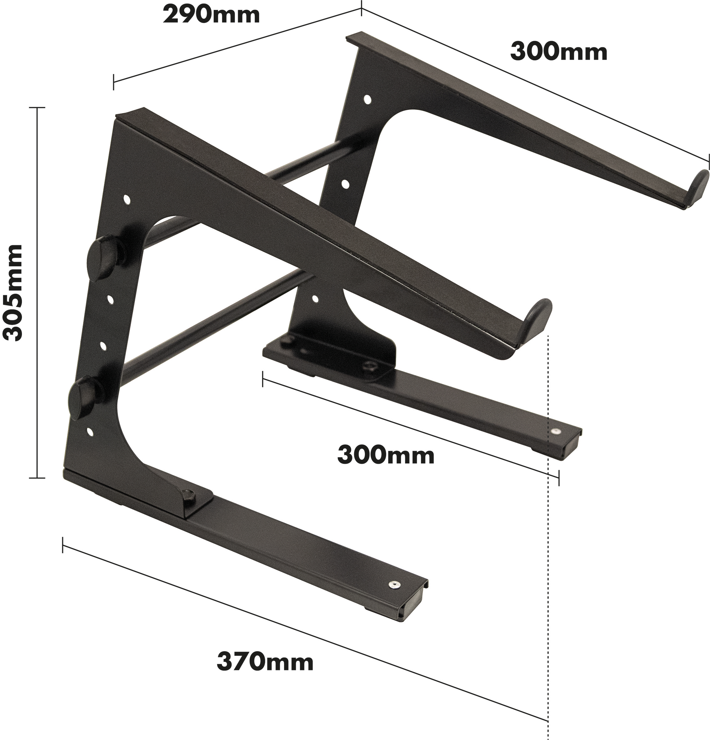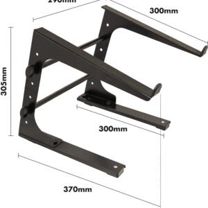 This portable, fixed height, angled laptop stand, is designed to sit on a desk, table or other suitable flat surface. The laptop stand is ideal for DJs or musicians and will safely hold laptops as well as some mixers, effects units or lighting consoles. The arms feature raised lips to prevent the laptop slipping forward and the stand can be assembled quickly and easily.
