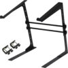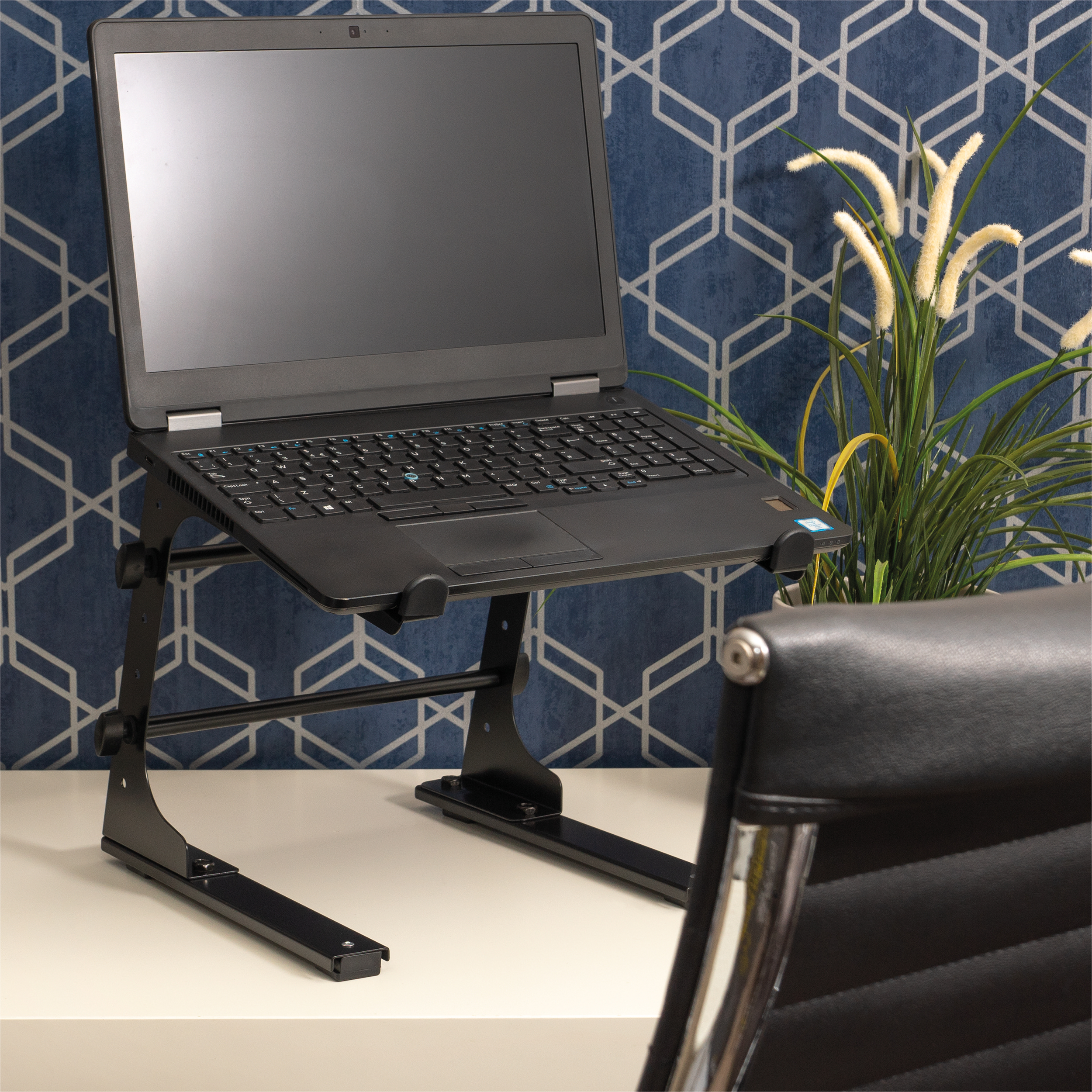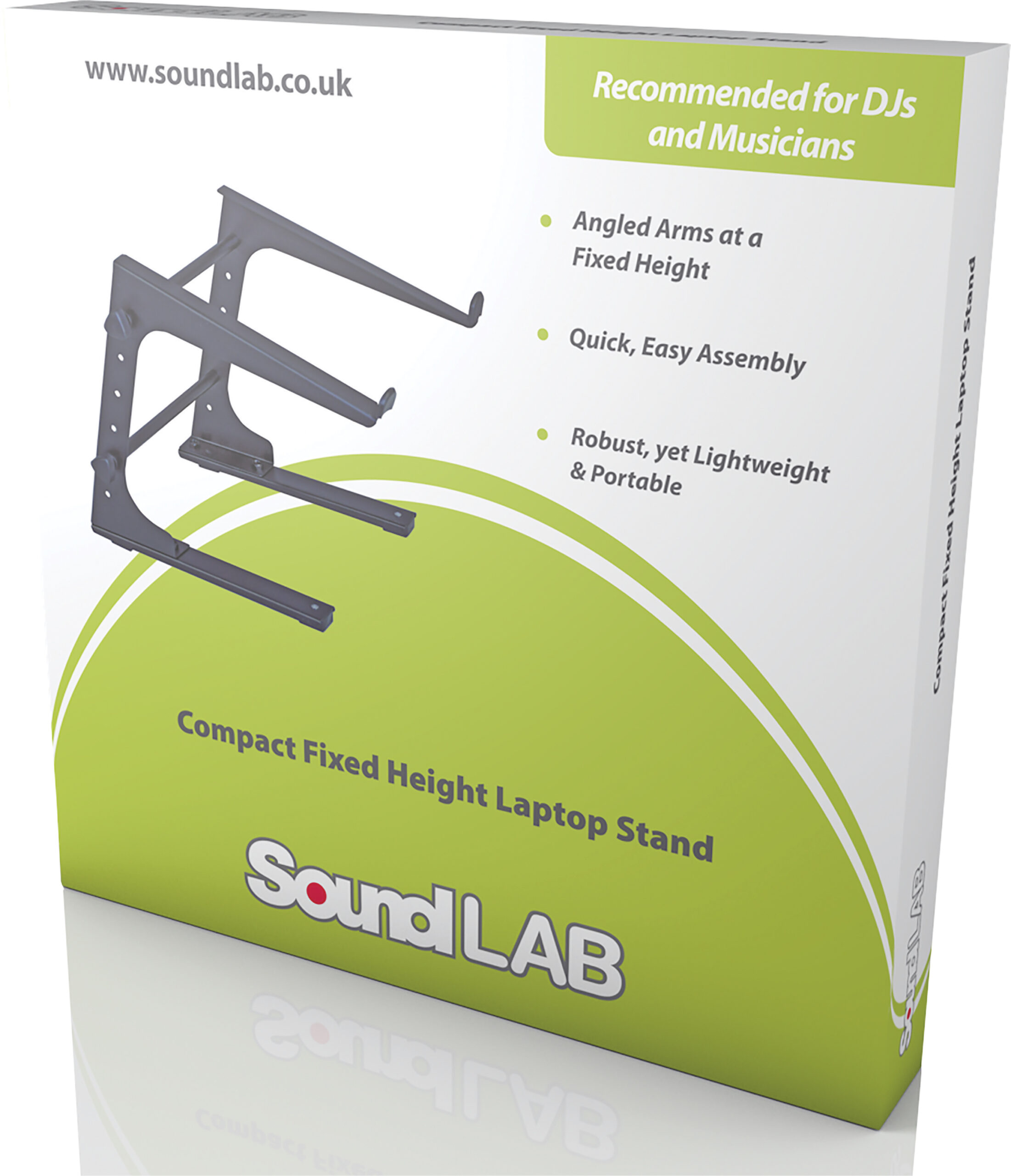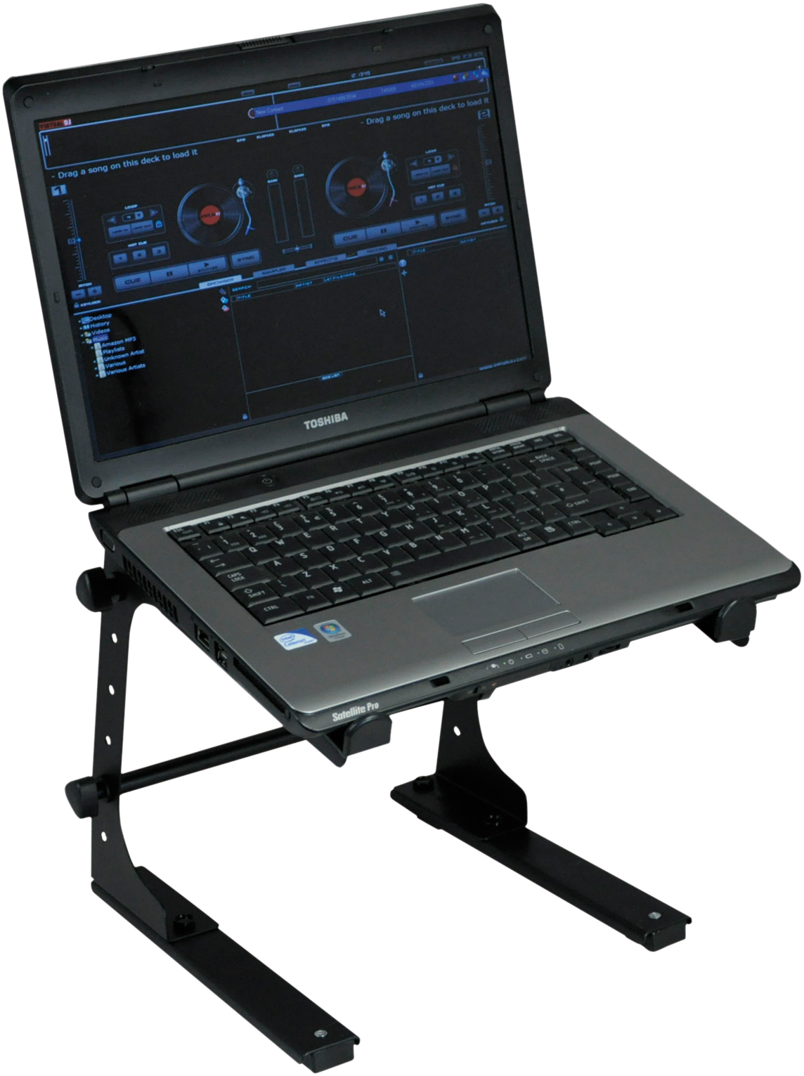 This portable, fixed height, angled laptop stand, is designed to sit on a desk, table or other suitable flat surface. The laptop stand is ideal for DJs or musicians and will safely hold laptops as well as some mixers, effects units or lighting consoles. The arms feature raised lips to prevent the laptop slipping forward and the stand can be assembled quickly and easily.