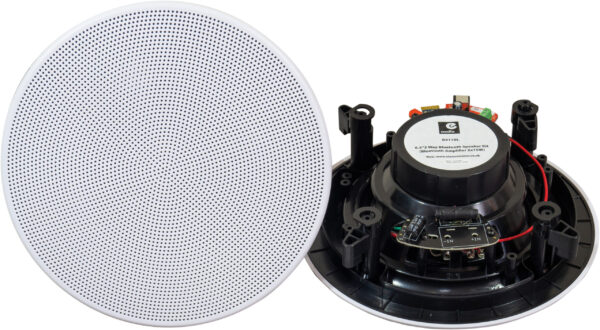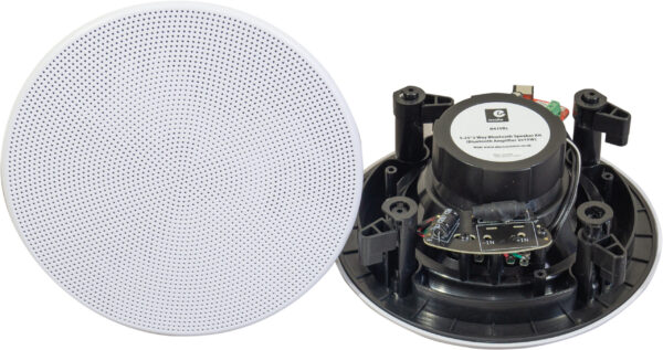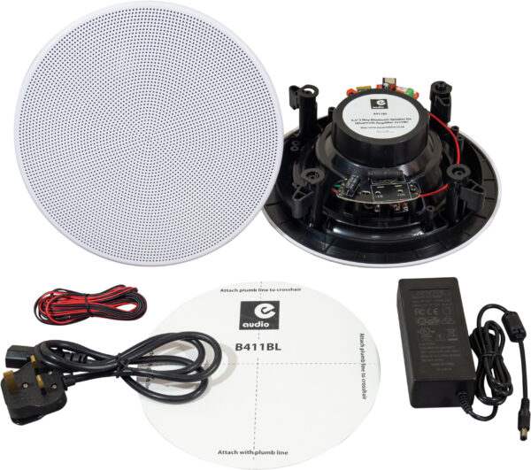 Complete Bluetooth ceiling speaker kit designed to play music from your favourite playlists through a wireless connection. The kit features 2 x ceiling speakers with built-in tweeters, 1 with a Bluetooth stereo amplifier and 1 x passive ceiling speaker, 2 x 3m speaker leads, 12V in-line power supply and cut-out template. The kit is ideal for both domestic and commercial use and can connect to most Bluetooth devices. The ceiling speakers are high quality, supplied with a fitted tweeter for greater clarity and brightness. The speakers are ideal for outdoor use (speakers only) as well as lounges, offices and shops ETC providing excellent sound quality and durability. A template is provided to help cut out the speaker fitting holes and simple instructions on how to connect the amplifier, making this an easy to fit kit.