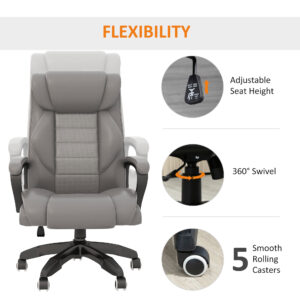 Work time will always be worth it with this massage office chair from Vinsetto. It’s formed into an oversized square shape, filled with thick sponge for comfort like no other. There are 4 vibration points on the back and 2 on the seat, controlled by the attached remote. The comfortable desk chair features swivel and height adjustable seat, fixed armrests and tall back with extra padding on the head area. Your best choice for working and relaxing in the home office with the comfy chair.