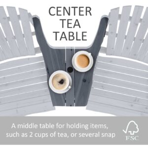 • CONNECTED CHAIR AND TABLE: Two seats, with a table in the middle, the Adirondack chair giving you a place to relax with a friend and a handy holding place next to you.