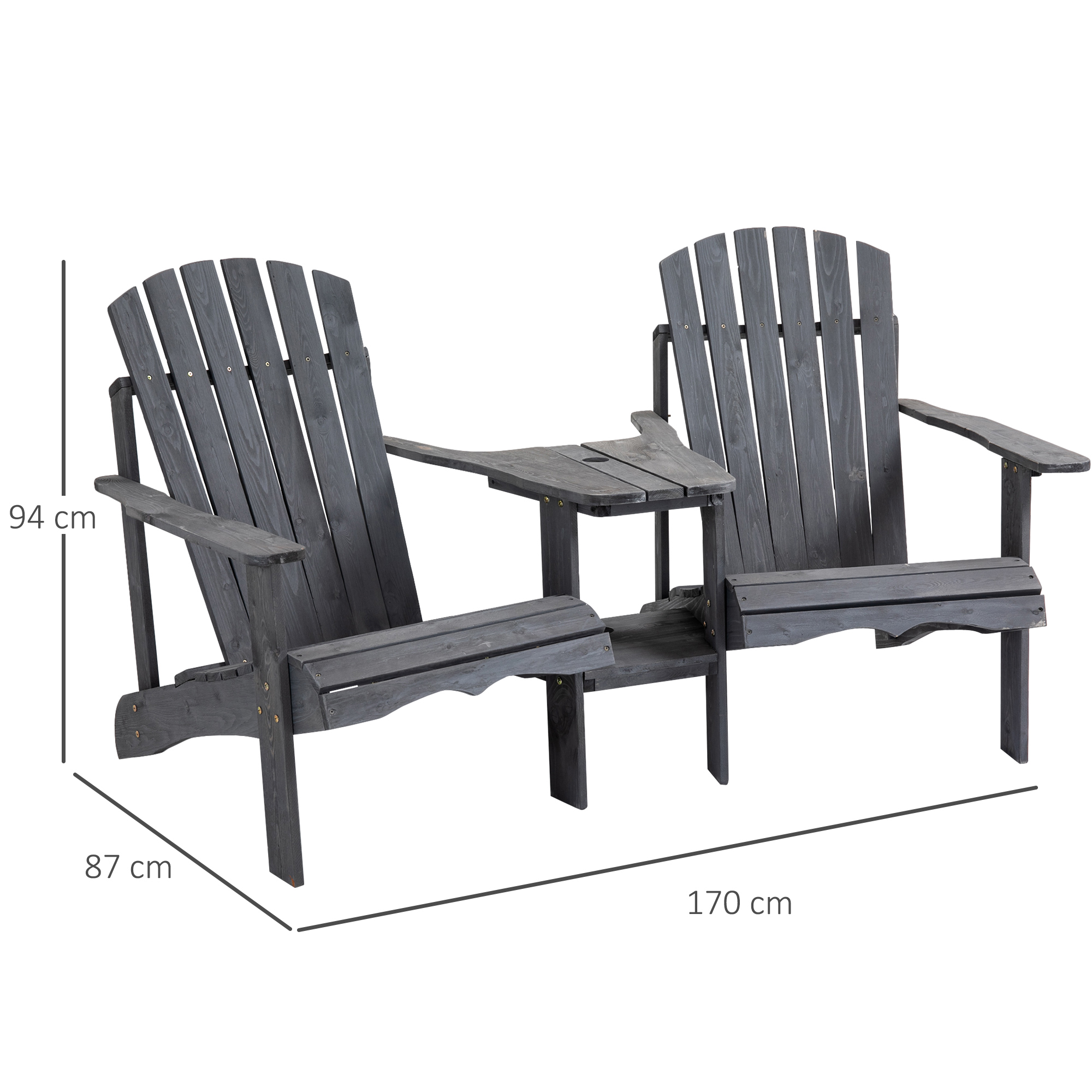 Outsunny Wooden Outdoor Double Adirondack Chairs Loveseat w/ Center Table and Umbrella Hole, Garden Patio Furniture for Lounging and Relaxing,