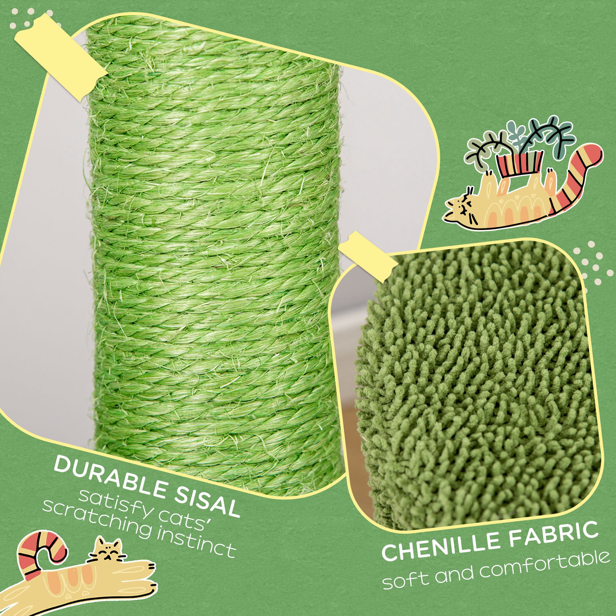 Grab your cat’s attention with this cactus-designed cat play tower from PawHut. They can spend their day scratching at the sisal-wrapped post, keeping them from tearing up your furniture. When it’s playtime, they’ll have a dangling toy ball to keep busy when alone. When it’s naptime, they can rest in their private area covered in soft chenille fabric. With different levels, they choose where to relax and play. Excitement, happiness and rest ?? all provided by this cat tree for indoor cats.