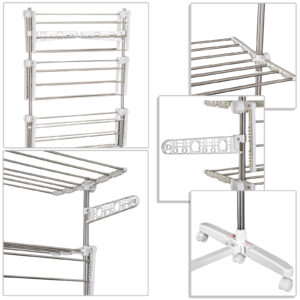 The Homcom foldable clothes airer is a perfect choice for drying your clothes. With the ability to have sections with different types of clothing makes it an ideal solution. With numerous hanging positions it gives a lot of flexibility and perfect for indoors or even in a balcony with limited space. Made with high quality stainless tubing and high quality lower footings it will last for a long time. It is easy to assemble and can fold when not in use, also with its smooth finish can easily be kept clean and maintained.