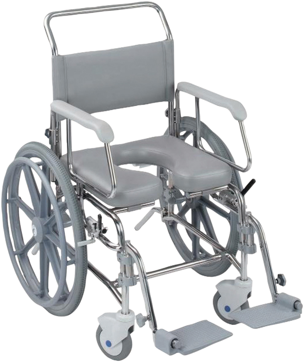 Mobile showering solutions for the home, nursing home and hospital. Combining durable stainless steel with modular construction the TransAqua range of shower and toileting chairs offer flexibility for both user and carer. Height to underside of seat can decrease by up to 15mm if maximum load is applied. TransAqua height can be increased by 25mm or 50mm by the use of leg extension pins. Overall width can be reduced by 30mm (on Self Propelling models) if wheel rims removed. There are 3 different wheel size options (20″, 22″, 24″) which give different seat heights and clearance dimensions. Please contact Chiltern Invadex for guidance.Please take advantage of our free on site surveying service.