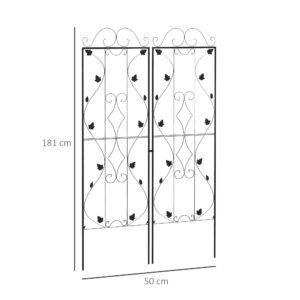 These Outsunny metal garden trellis frames allow you to grow plants vertically. A pack of two for double the growing room. Both are made from powder coated metal for a strong structure. Bottom spikes to insert into the ground. Complete with leaves and curved lines all over for decoration.