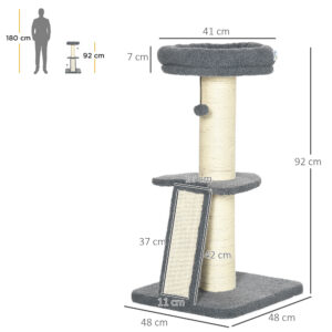 - Compact two-tone grey and natural sisal cat tree will easily fit into your interior by adding a decorative touch