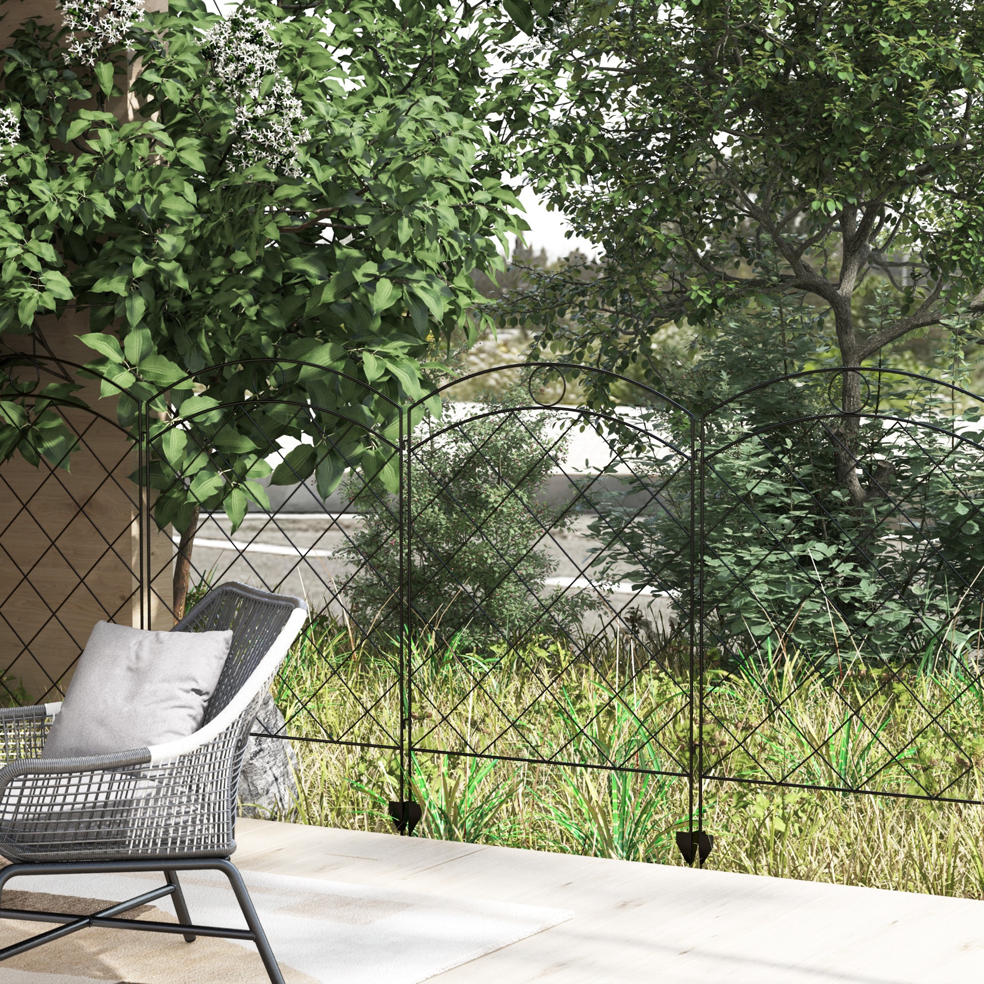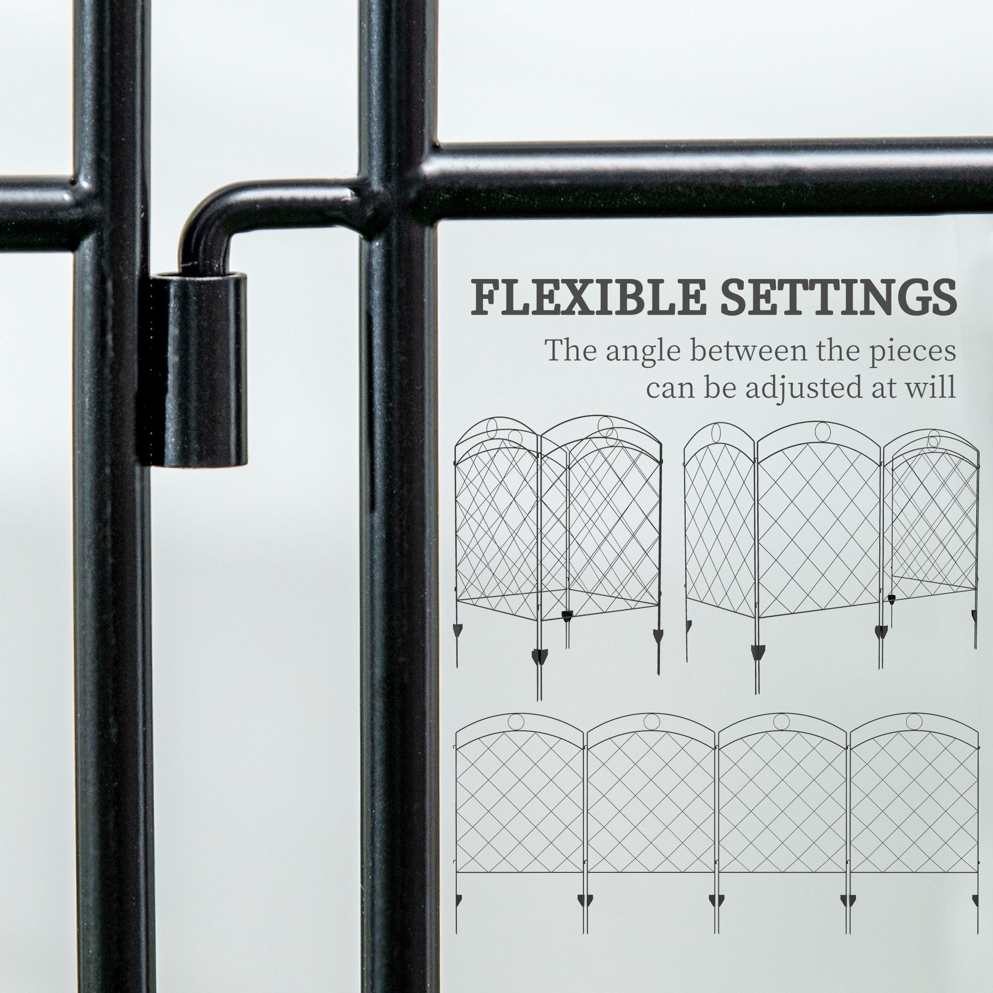 A beautiful and practical fence which can easily be shaped to suit you: this Outsunny piece is a chic entrance to your home! 3.5m long, each panel can be flexed to a different position, making it great for obscure shaped areas. Made from steel for a strong structure, the powder coating offers extra protection and strength. The inner gridding and top circles create a pretty look.