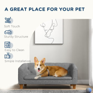 Don’t want pets on your furniture? This PawHut pet sofa is your solution. It’s a cosy place of their own, where they can curl up and relax. Spacious enough to lay and stretch, it has a removable cover for easy cleaning. Quick and easy to set up, its wooden frame ensures stability and durability, so pets are safely supported when resting. A sleek design, complementing your home d??cor, making it a chic addition. Snug stable and stylish, it’s a must-have for every pet owner.