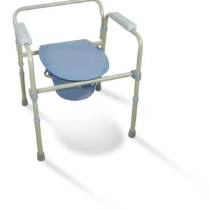 - COMFORT; Flip up toilet seat and lid, built in armrests and backrest. Commode pail with handle and lid for easy disposal