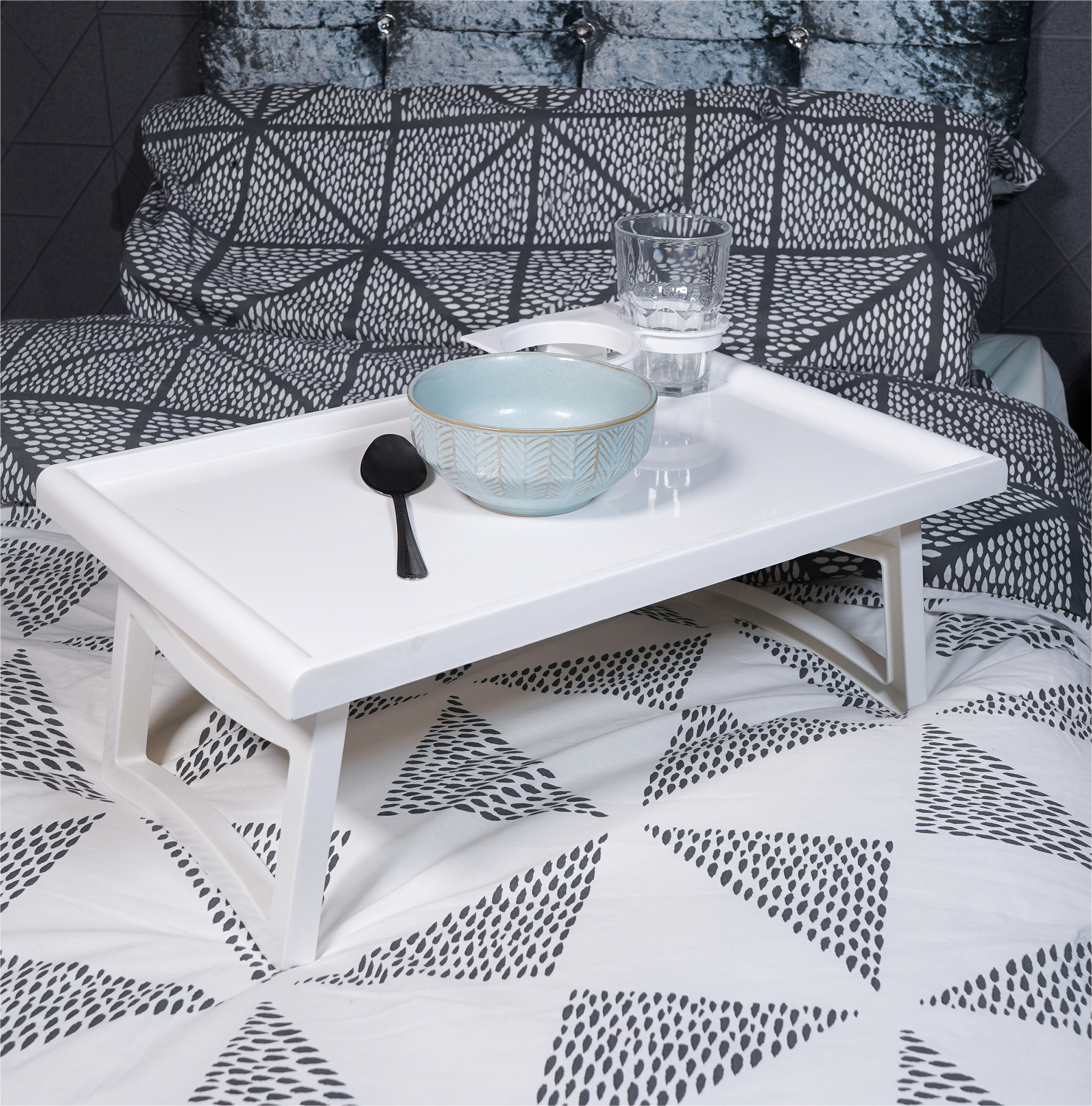 This portable table is ideal for eating, reading or doing crafts and hobbies whilst in bed. It is lightweight but has a sturdy design. The table top has a lip to prevent items from sliding off and two circular holders for drinks glasses, accessories etc. The tray has fold out legs so you don’t have to balance the tray on your body. The legs fold away for easy storage under the bed when not in use. It is ideal for those who are confined to bed for long periods.
