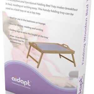 This attractive and functional Folding Bed Tray makes breakfast in bed, reading or writing easy. The wooden legs on the bed tray fold out to be placed over your legs and the table top surface is laminated for easy cleaning. With built-in handles to easily carry and position the Bed Tray.