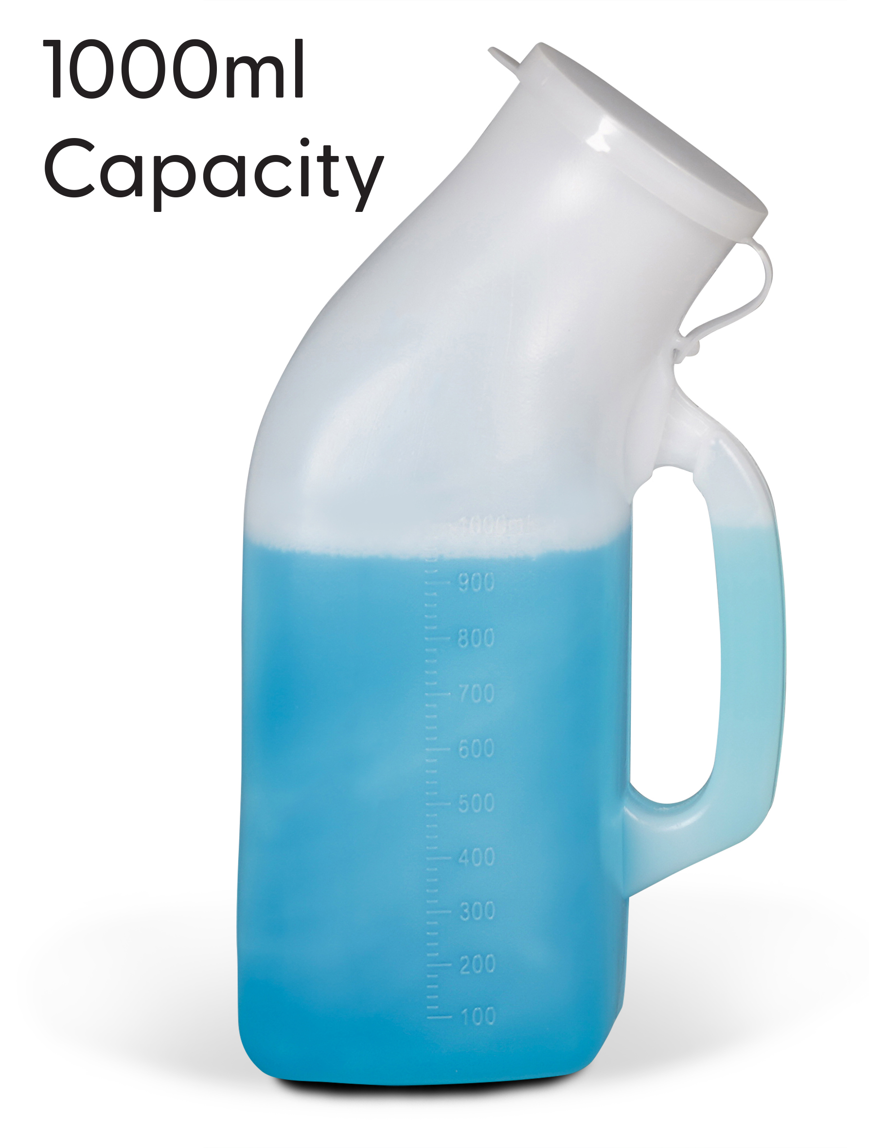 - Portable male urinal is handy for use in the bedroom for people who struggle to get to the bathroom