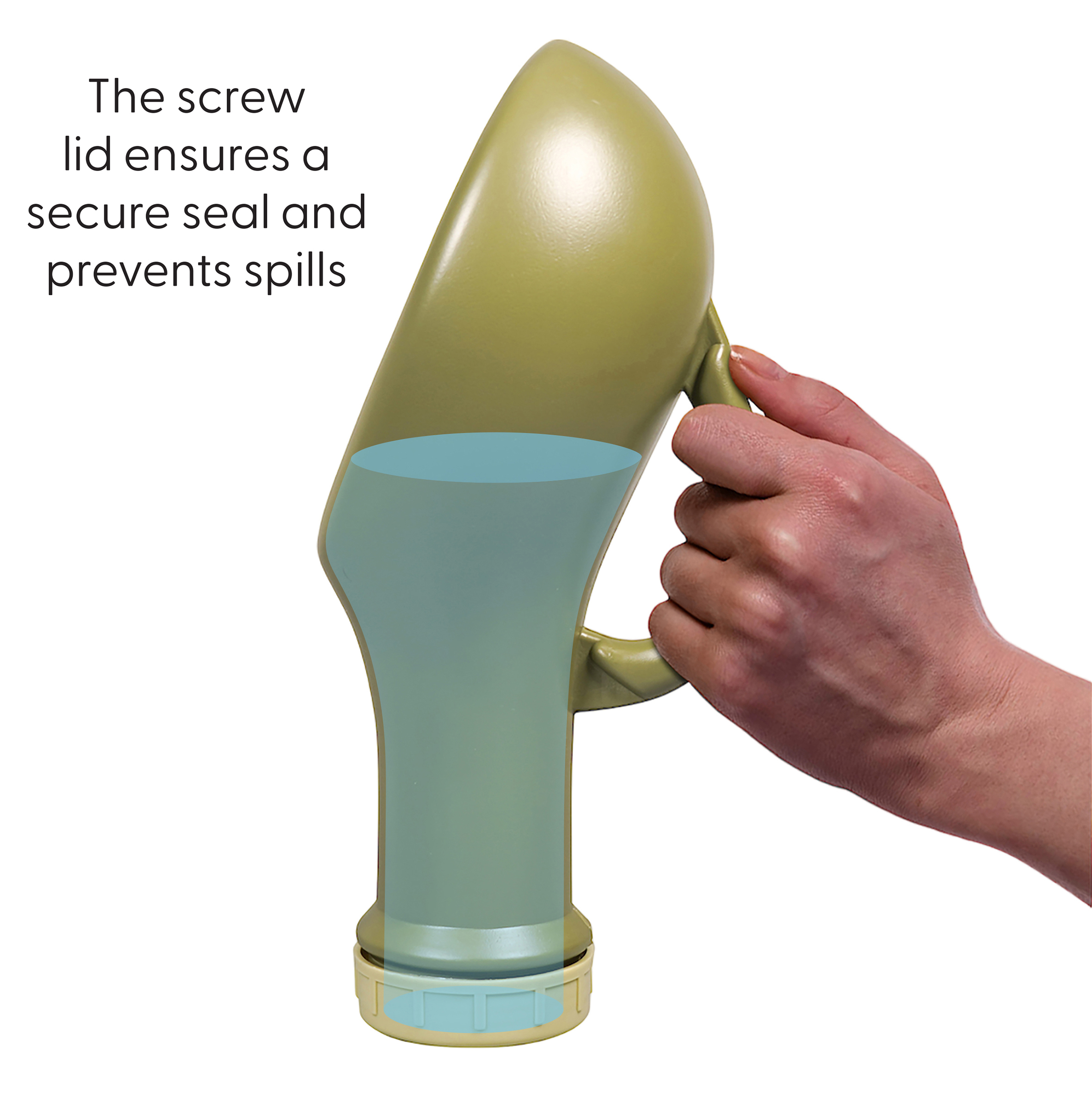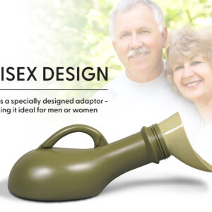 Introducing the Portable Unisex Urinal, a practical and inclusive solution designed for convenience and discretion. This pack of two urinals comes equipped with a user-friendly screw top lid, ensuring a tight seal to prevent any unwanted spills during use. The inclusion of a specially designed adaptor allows for comfortable and hygienic use by individuals of all genders, making it a versatile choice for a range of users. With a 1000ml capacity in each urinal, this pack provides ample storage, reducing the need for frequent emptying and ensuring long-lasting convenience.The discreet khaki green color of these urinals not only adds a touch of style but also cleverly conceals the liquid contents, maintaining privacy for users. The generously sized carry handles make these urinals highly portable, perfect for travel or for those who are bedridden. Whether on a road trip, camping adventure, or within the confines of home, these portable unisex urinals offer a discreet and practical solution for individuals seeking independence and dignity in their personal hygiene routine.