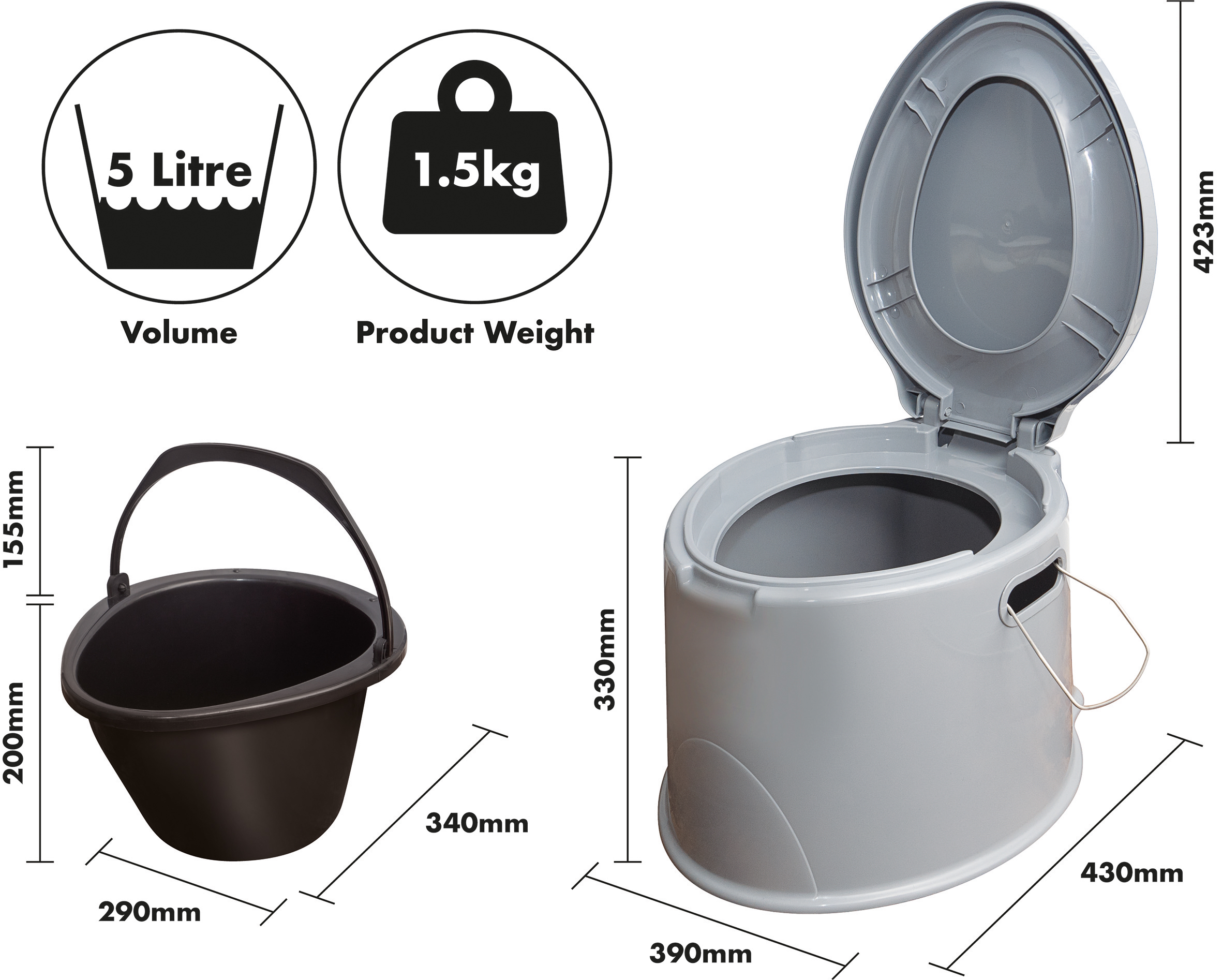 - 5L waste pail with lid included