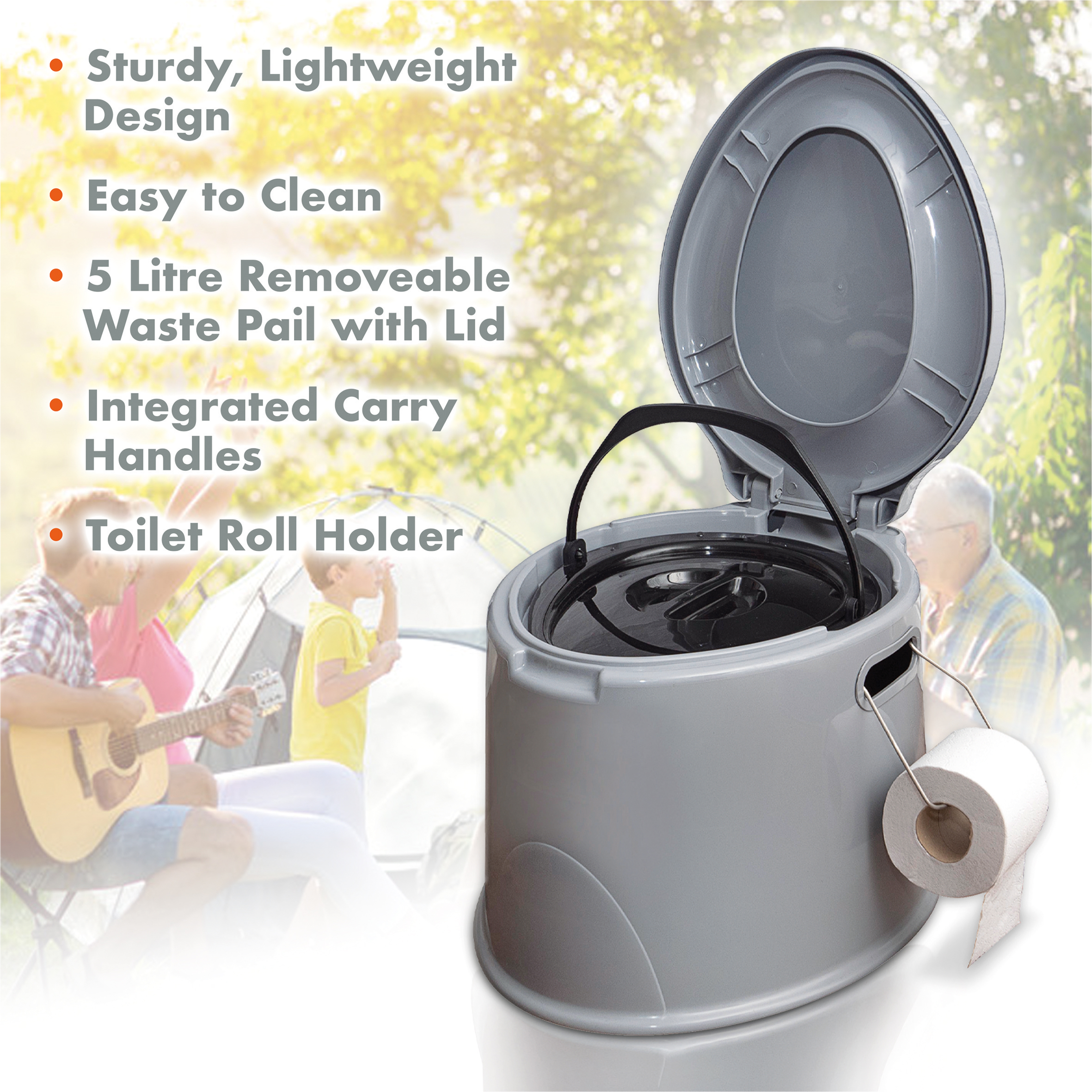 The Aidapt Portable Toilet is ideal for camping, fishing and boating. It is also great for outdoor everts. The sturdy, lightweight design is easy to clean and transport. It includes a toilet roll holder, removable waste container and side handles.