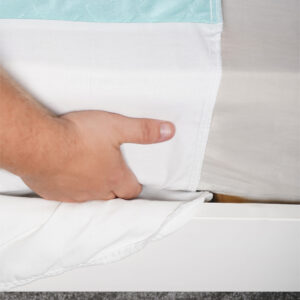 Pack of 2 washable bed pads with tuck flaps for helping adults and children with incontinence issues. Available in two sizes to suit a single or double bed – 85x90cm and 85x135cm.