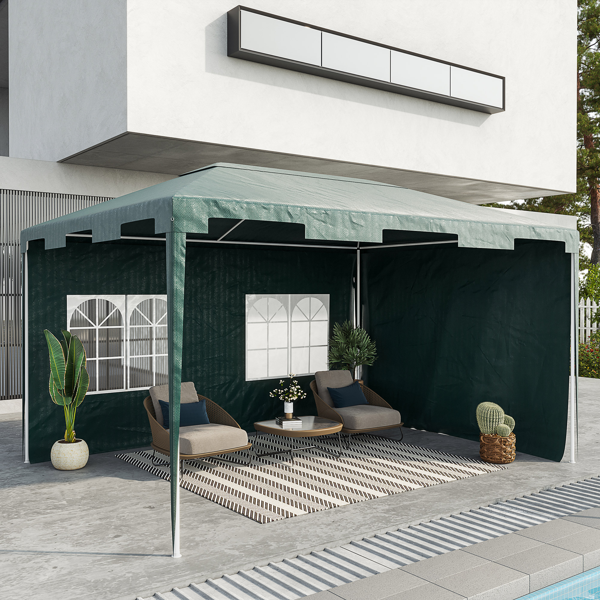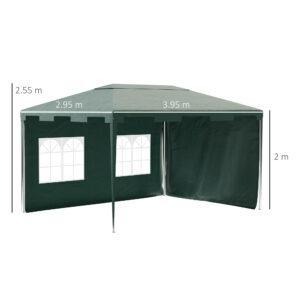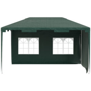 A marquee camping gazebo with sides to put up for any event – car boot sales, garden parties, family gatherings and so much more. A steel frame for strength, our marquee is made into a 3m x 4m size, for plenty of space inside. Two removable walls of the party gazebo allow you to open up fully whenever you want; whether private or open, the choice is yours. A wall features two clear windows to see outside. The sloped roof is weather resistant to protect against light rain and more.