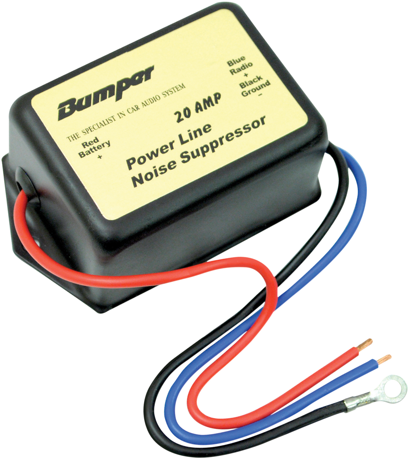 20 A noise suppressor for installation in the 12 V power lead to sound equipment to eliminate interference from electrical systems. Static use only.