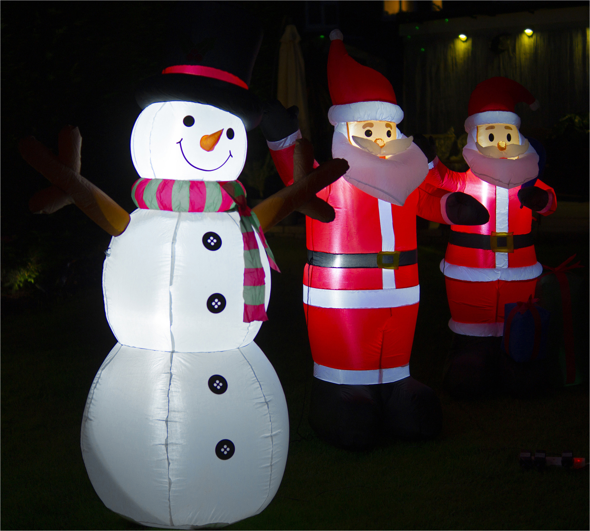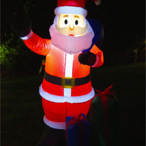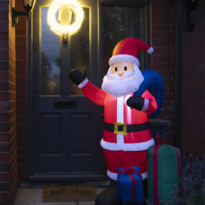 Delight your family and neighbours this festive season with the charming 150cm inflatable Father Christmas with sack and presents from St Helens Home & Garden. Everything you need is supplied, simply plug him in and watch him inflate, it couldn’t be easier. The Father Christmas features internal pre-assembled LED lights to make Christmas that little bit more magical. Supplied with an internal fan, 12V power adaptor, safety ropes and 2 pegs to help anchor it to the ground in inclement weather, the base is also weighted for extra safety, a zip compartment allows you to add extra weight if necessary. . When the sad day arrives and Christmas is over simply fold him flat and pack him away in his box until next year. Made from 100% polyester. For either indoor or outdoor use.