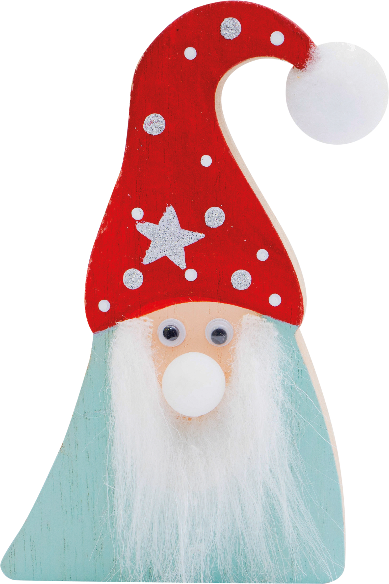 - The gonk has a pom pom on the end of his hat, a fluffy beard and googly eyes
