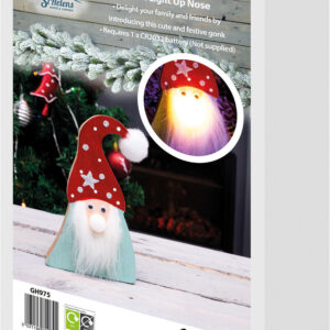 Delight your family and friends at Christmas by introducing this cute and festive gonk to your home.Gonksoriginated in Scandinavian folklore as small, white bearded creatures and have been widely adopted in recent years as a festive decoration of choice. The gonk is battery powered and when 1x CR2032 battery (not supplied) is inserted the nose lights up and provides your room with a gentle glow. The gonk also has googly eyes, a pom pom on the end of his hat and a fluffy beard.