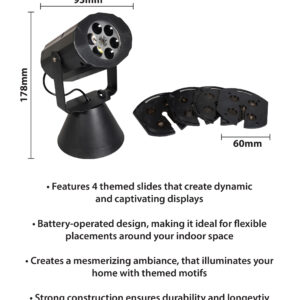 Transform your indoor space into a mesmerizing winter wonderland with the Xmas Haus Festive Christmas LED Projector. This innovative projector brings the magic of the season to life with its vibrant and dynamic displays. Featuring four festive moving slides, this projector illuminates your indoor area with enchanting images. Watch as the images dance and move, creating an immersive and captivating experience for all who see it. Battery operated (3 x AA not supplied).