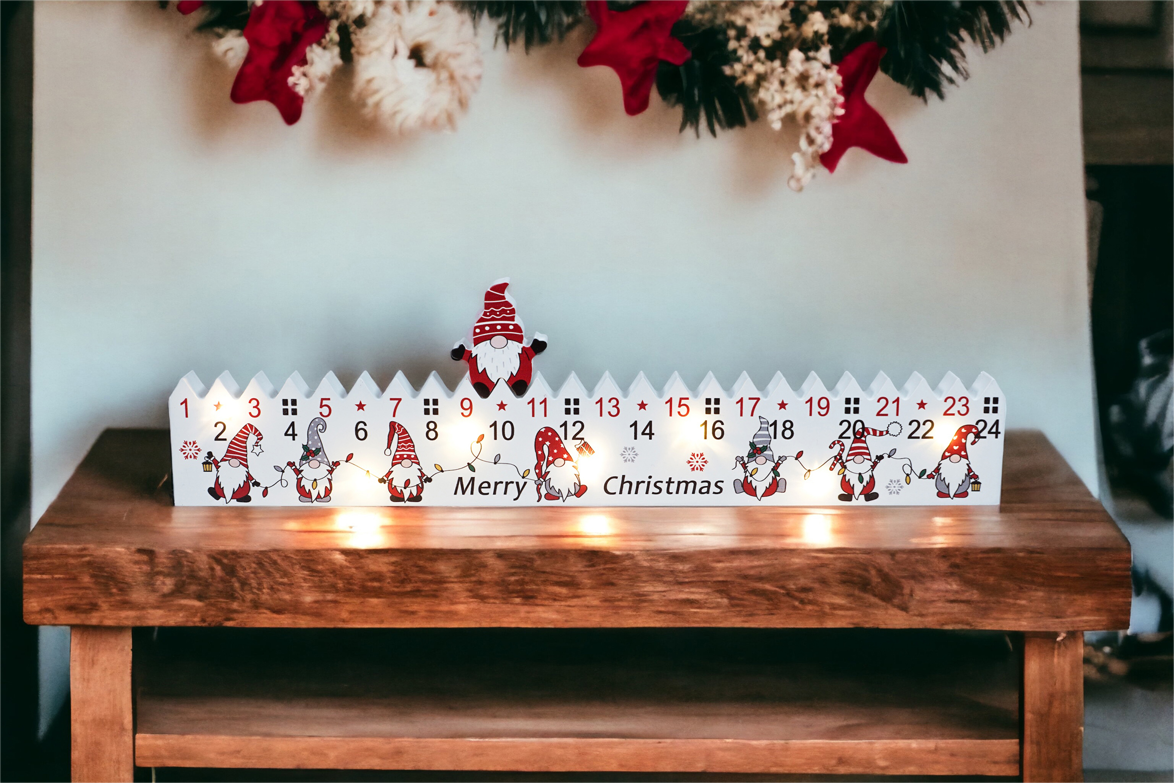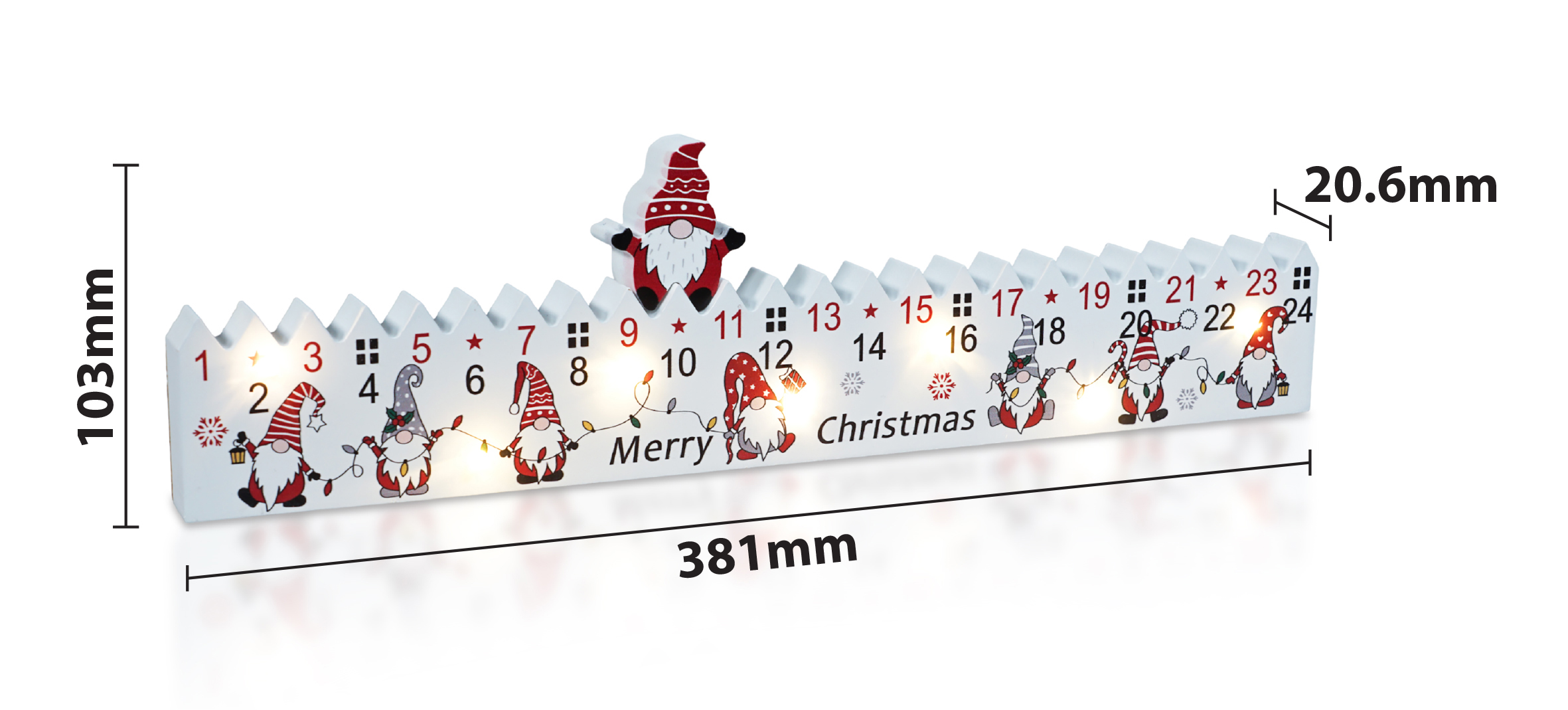 Count down the days until Christmas in style with the Xmas Haus festive natural wood Light up LED Christmas Advent calendar. This exquisite advent calendar is not only a functional timekeeper but also a stunning decorative piece that adds a touch of magic to your holiday season. Illuminate the anticipation and excitement with the gentle glow of LED lights that adorn the advent calendar. The soft illumination creates a warm and inviting atmosphere, enhancing the joyous spirit of the season. Battery operated (2xAAA Not supplied).