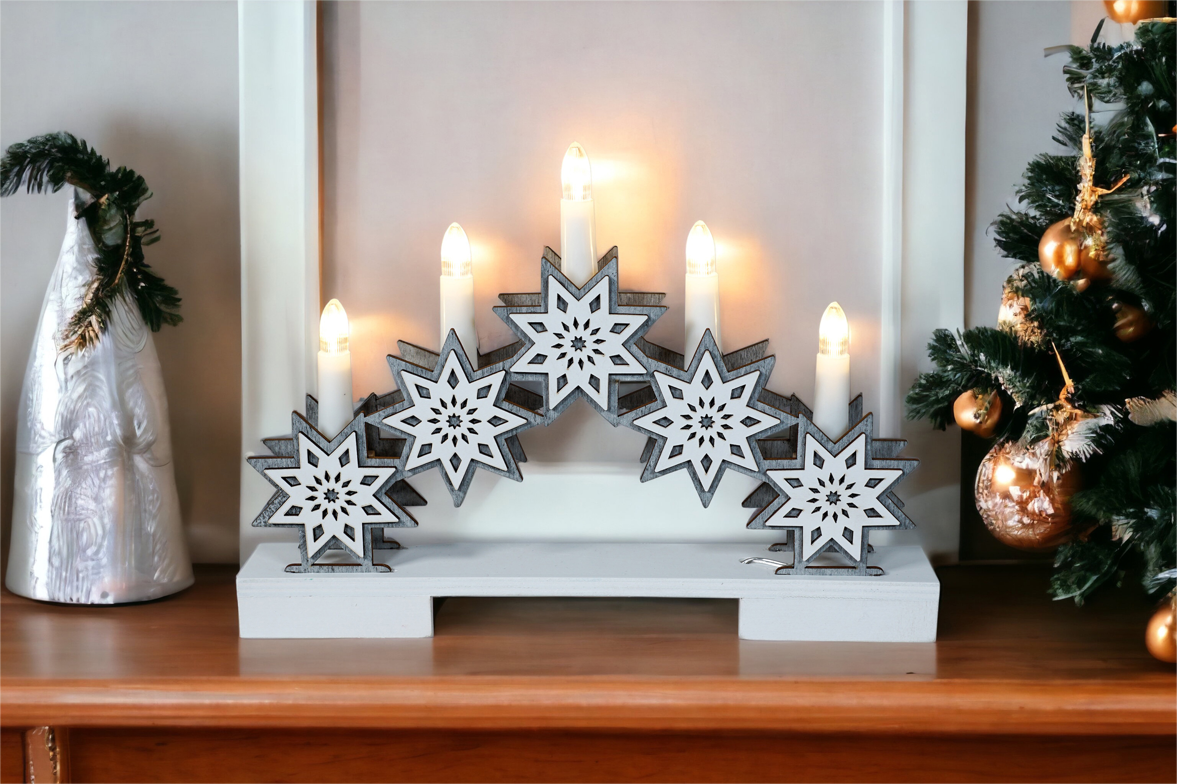 - Xmas Haus natural wood LED Light Up Christmas 5 Candle Bridge Arch Decoration