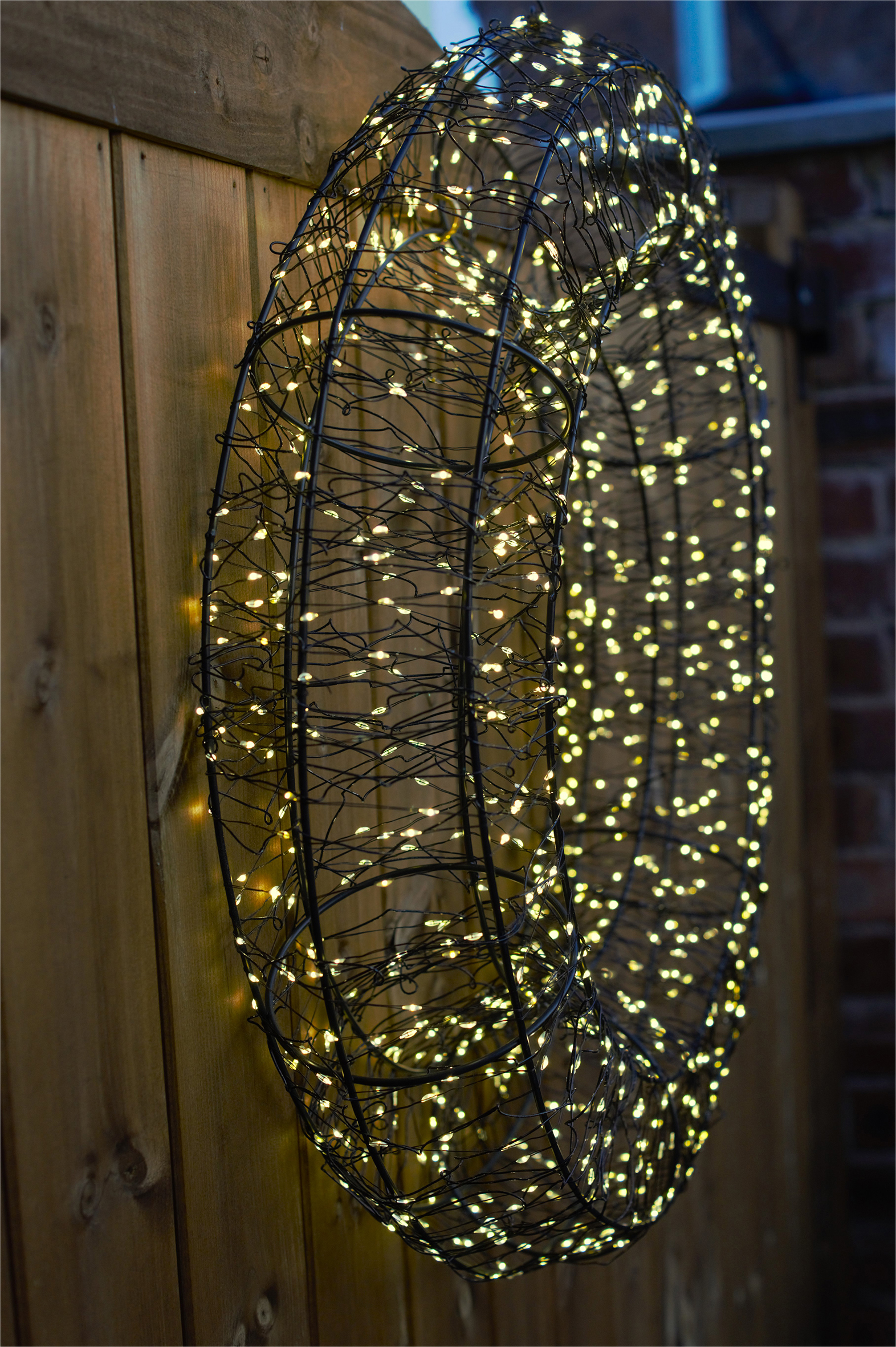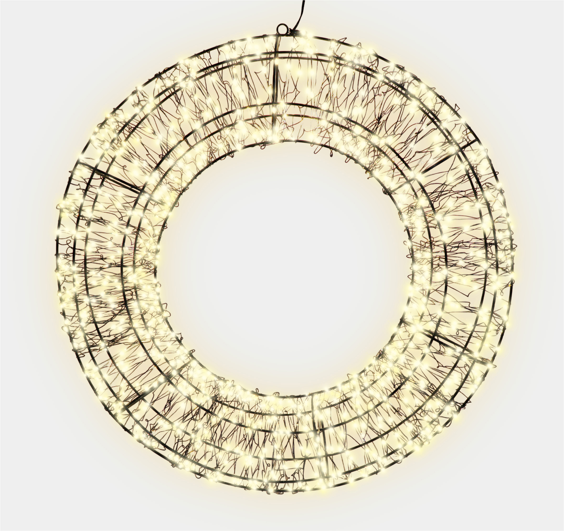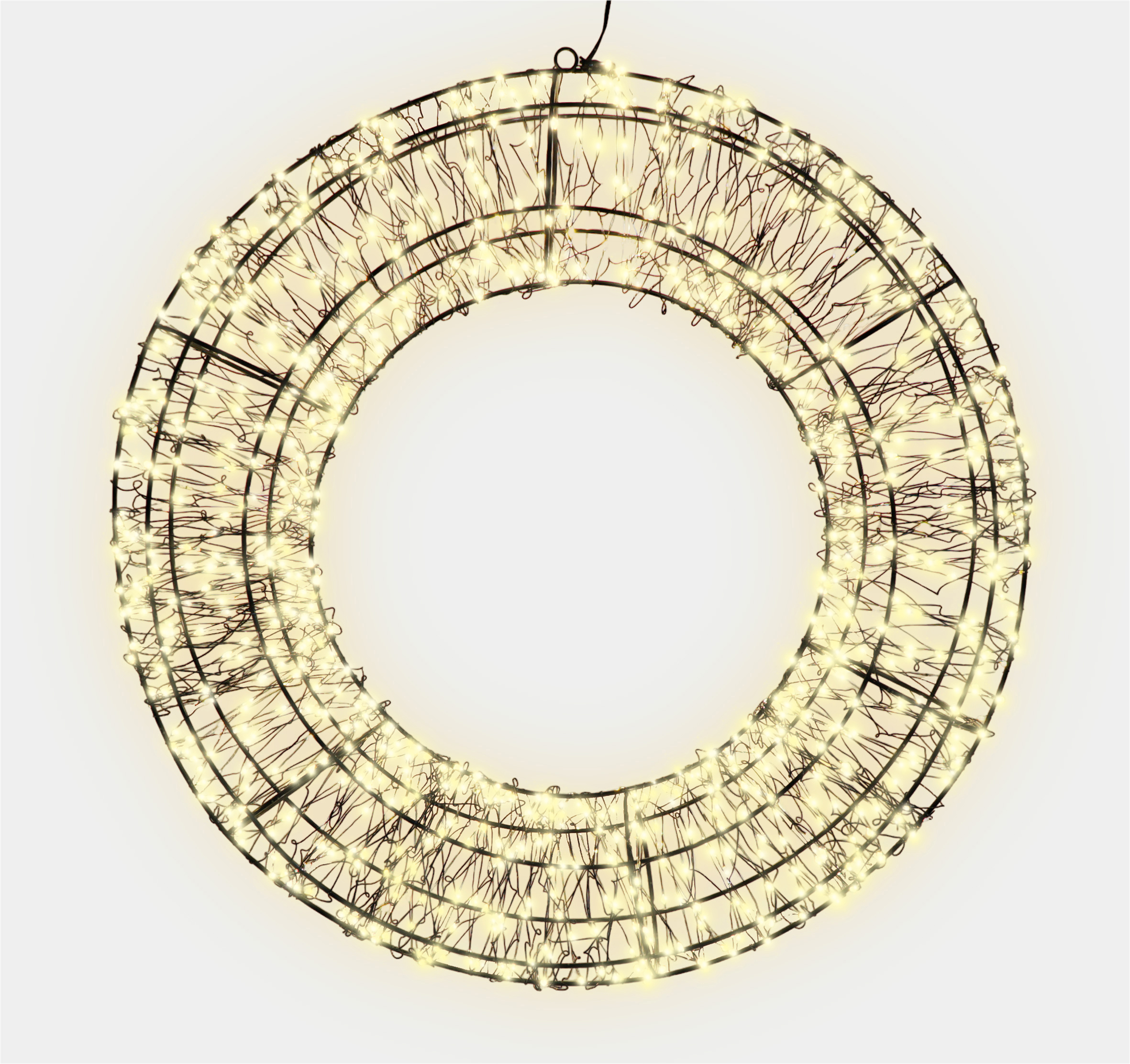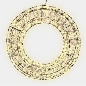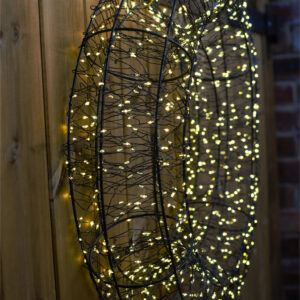 Enhance your festive decor with the Xmas Haus Pre Lit Micro LED 2D Wreath, available in sizes 38×7.5cm (480 LEDs) and 50×8.5x (720 LEDs) and 58×12.5cm (960 LEDs), with warm white LEDs all on a black wire frame of which 10% Twinkle. This versatile wreath comes equipped with a 5-meter lead, a timer, and hanging point, making it ideal for both indoor and outdoor use on doors, walls, and ceilings. Create a stunning holiday display effortlessly with this beautifully designed, easy-to-install wreath. Supplied fully assembled with a hanging point and sturdy cardboard box for future use.