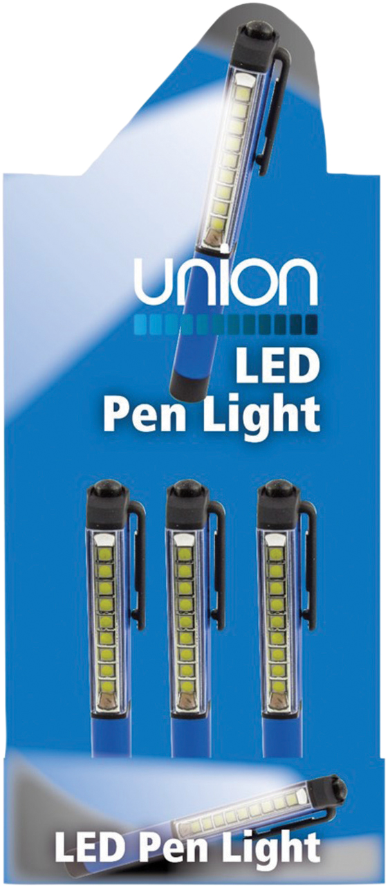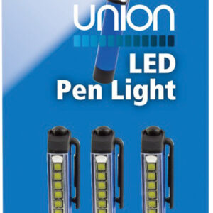 The Union COB LED Pen Area Work Light has a neat compact design, the light features a soft touch switch, a pocket clip carry facility and magnetic clip. There is a compact battery storage in the handle. The work light is powered by 3 AAA batteries which are not included. Sold as a pack of 12.