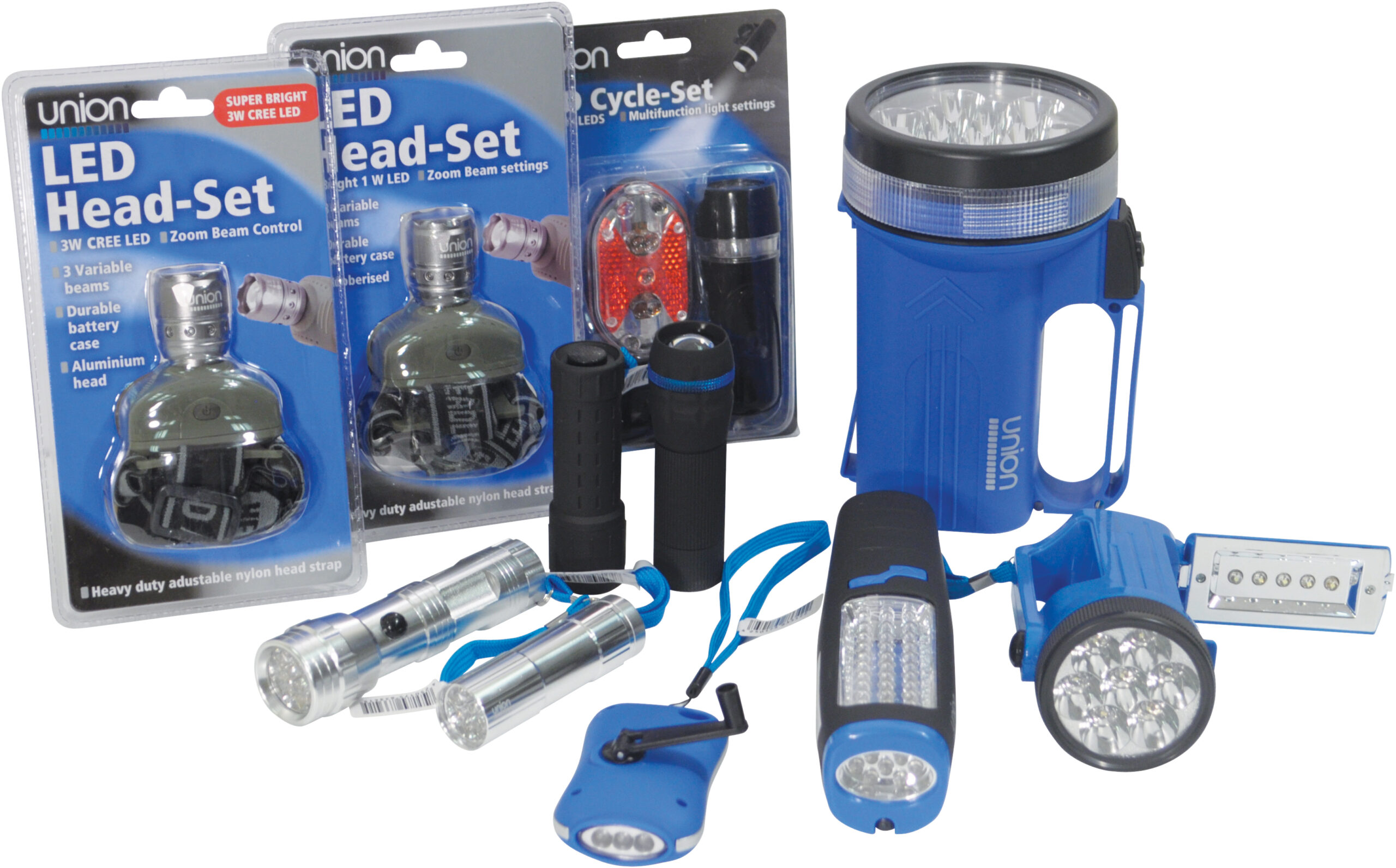 This Union handheld torch is fitted with 13 LED s and offers fantastic brightness and is perfect to use in a work environment or utilize it as a lantern type function. Powered by 4xD batteries (not included). Priced and sold as a Retail Display of 12pcs