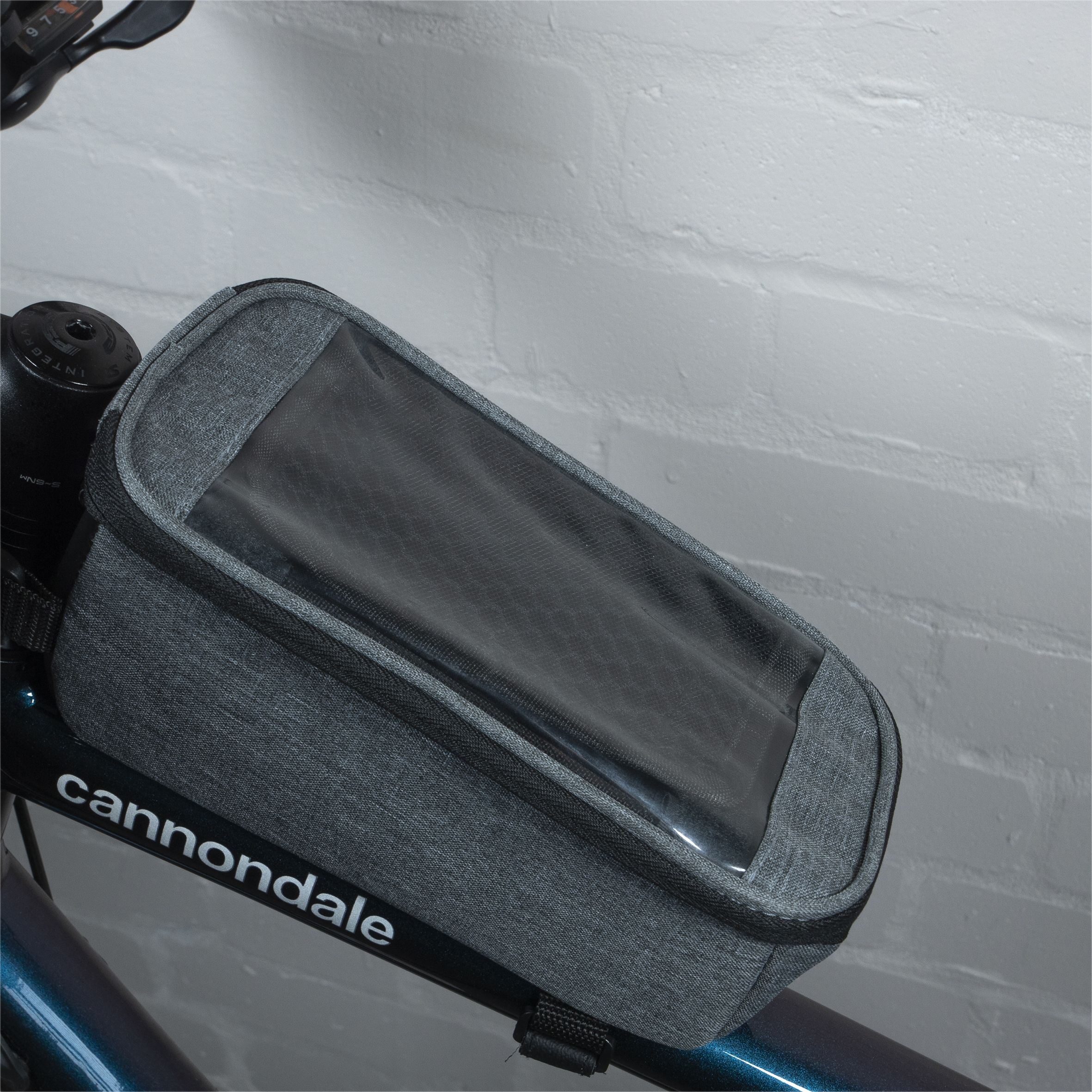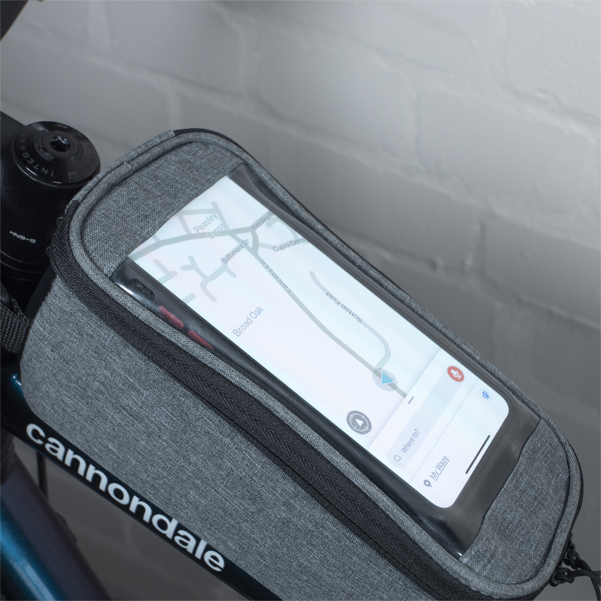 The bicycle frame bag is designed to be secured onto your bike frame using the adjustable straps and velcro fastenings, its location on your frame means it will not hinder you whilst riding your bike. Your phone is placed under the water proof, transparent, touch screen cover meaning you can control your mobile whilst on the go. There is a built in headphone hole allowing you to listen to music and take calls. Never get lost again when cycling as you will be able to study maps and instructions while out and about. Take care to pull over when using your phone on the road.There is a generous storage section which is perfect for storing essential items such as spare inner tubes, puncture repair kits, mini pumps, keys, mobile phones and wallets. The bag is easily accessible using the zip and can quickly be removed from your bike if you need to take it with you into a shop or cafe for example. A must have for all biking enthusiasts and hobbyists.Transparent cover is 15cm x 10cm.