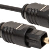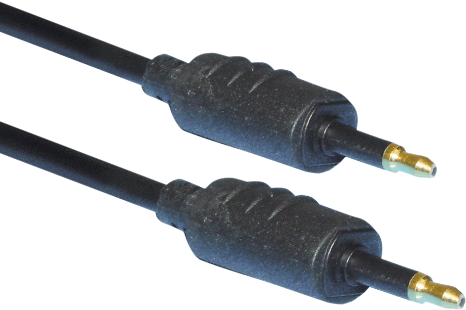 Mini (3.5 mm) fibre optic plug to mini (3.5 mm) fibre optic plug with gold plated contacts on a 1 metre high quality fibre optic cable.