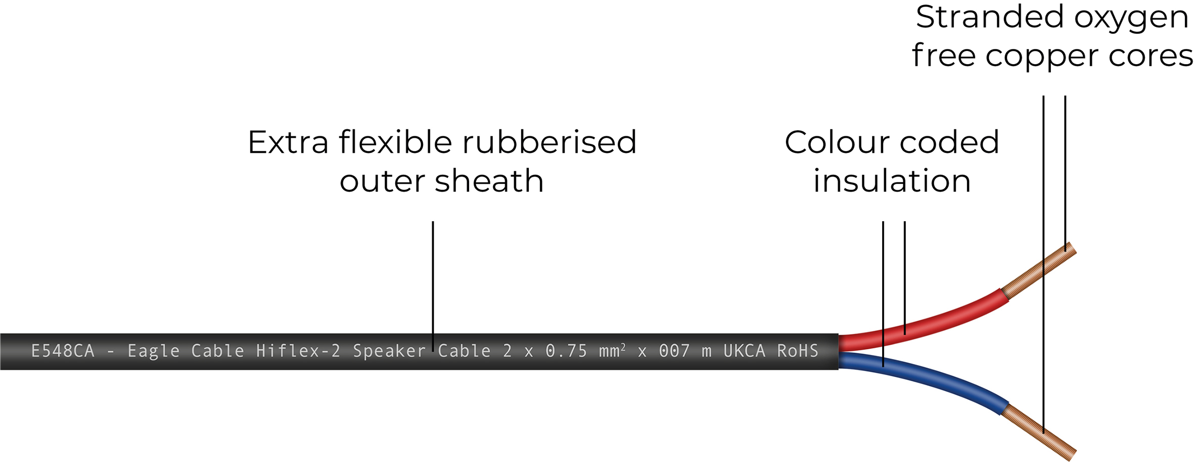Extra flexible rubberised speaker cable, manufactured in Europe and designed to stay flexible even at low temperatures. Designed to deliver maximum performance using high quality Stranded oxygen free copper cores. With an Extra tough flexible Jacket and heavy-duty construction for exceptional ruggedness and durability on the road. Ideal for making leads or on Installs.