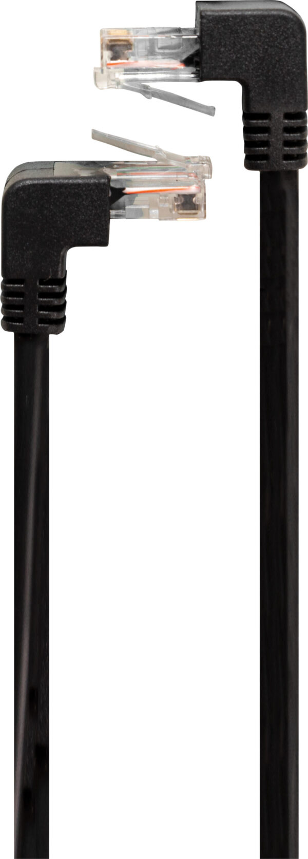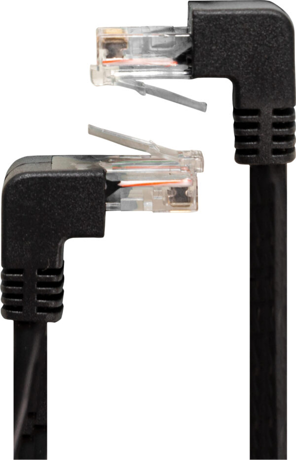 - Two male RJ45 connections on each end (right angled to right angled)