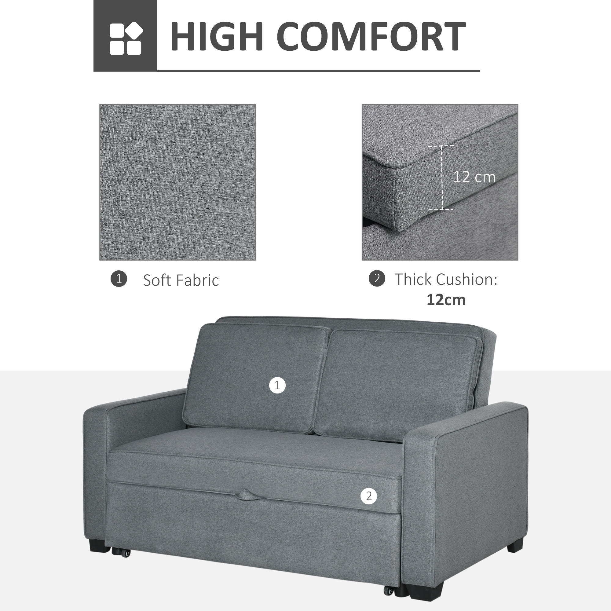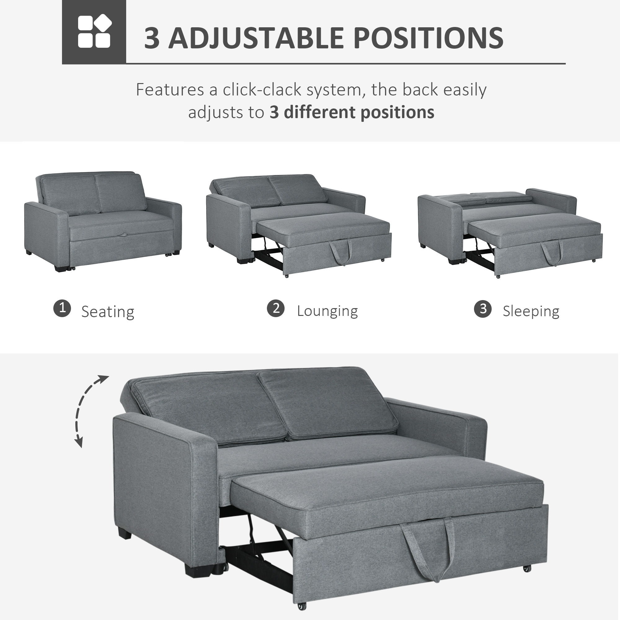 Everyone loves home furniture that does double duty. Especially for those who live in compact space. This HOMCOM two seater sofa bed creates a comfortable relaxation area, for both day and night; it also gives any overnight guests somewhere to sleep. Features a three-angle back for you to lie back in a position you like, with the click-clack operation making it easy to use. The pull handle operation makes it easy to transform – simply pull out and this convertible sofa bed is ready to use!