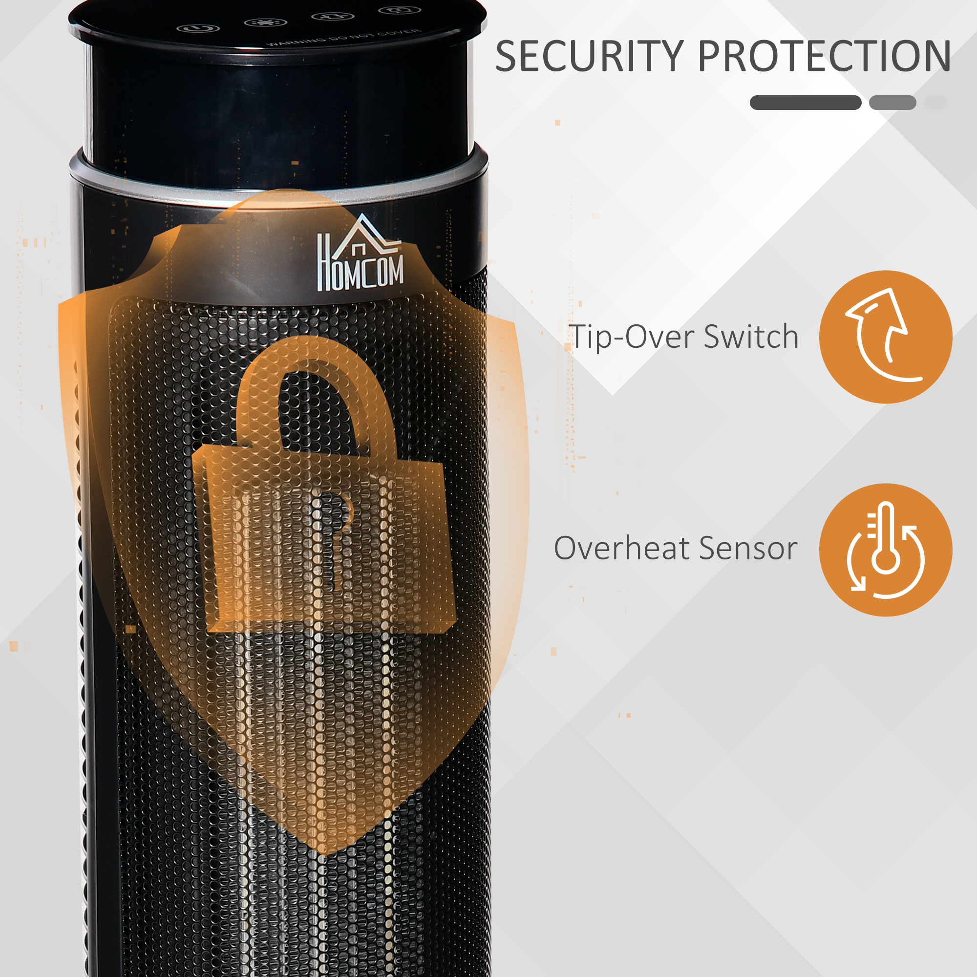 Keep warm with this freestanding heater from HOMCOM. Take control of the temperature by choosing the fan, low or high mode and adjusting the thermostat between 10-49?¨C. This can be done from the comfort of your sofa, using the remote. With a 42?¨ oscillation, the heat can spread throughout the room and warm up quickly. Don’t need the heater all night? Set a timer between 1-8 hrs to automatically switch the fan heater off and save energy. Get a cosy winter by floor heater.
