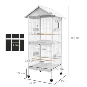 • Dimensions: Eave included: 168H x 78L x 75Wcm. NOTE: Suitable for finches, canaries, budgies, cockatiels and similar birds.