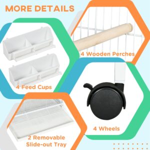 • Easy access: Features a large front door and several sliding doors, so you can refill food and water. It also allows you to get in and maintain the large bird cage. Includes a slide-out tray for effortless cleaning.