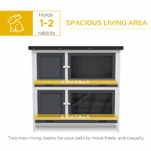 Pets will have a safe and comfortable home, thanks to this rabbit house from PawHut. They’ll have two levels ?? connected by a ramp ?? to freely roam up and down. Easy access is provided by the openable roof, windows and four lockable doors, whilst the two slide-out trays help keep their space clean. Made of solid fir wood for a durable construction, providing a long-lasting home, whilst the asphalt roof shelters their area from hot and wet weather ?? suitable for outdoor areas.
