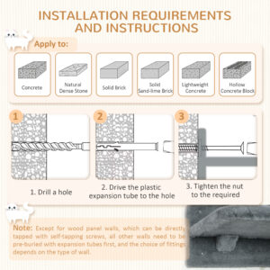 - Note: All walls need to be pre-filled with expansion tubes, except for plank walls, where self-tapping screws can be used directly on the wall